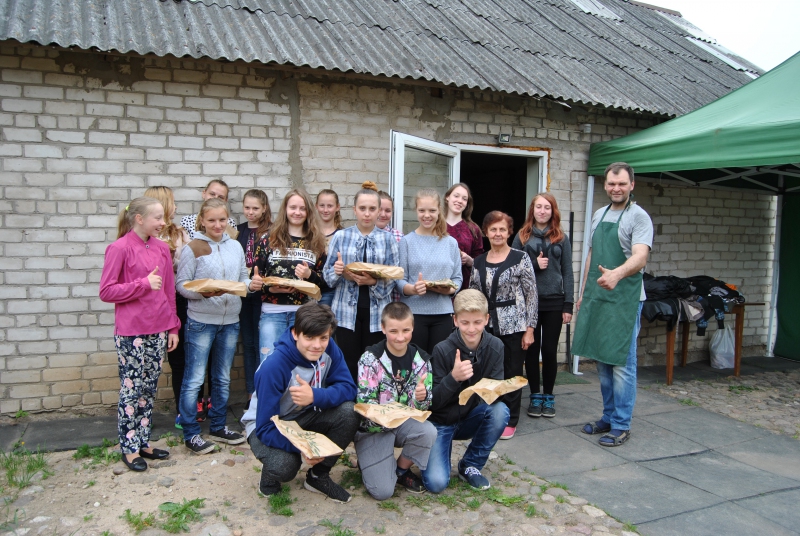 Brigaderes pamatskolas un Augstkalnes vidusskolas 7.-8. klašu audzēkņi 30. maijā iepazinās ar SIA “Tērvetes maize” ceptuves darbību, lauku sētas “Ābelītes” Bukaišu pusē atsaucīgo saimnieci un miltu un maizes izstrādājumu tapšanu SIA “A.R.D. Mēnestiņš”. Tā kā šogad jauniešu skaits bija liels, tad grupa tika dalīta divās daļās. Augstkalnes vidusskolas 7. klases jaunieši palika Tērvetes pagastā pie maizniekzeļļa Jāņa Kurpnieka, lai iepazītu maizītes cepšanas grudrības. Jaunieši tika pie izdevības ne vien klausīties maizes cepēja stastījumā, bet arī praktiski darboties. Katram jaunietiem maiznieks jau iepriekš bija sagatavojis produktus picas cepšanai lielajā maizes krāsnī. Ne visai siltajā dienā bija tik patīkami atrasties dzīvās uguns tuvumā! Jaunieši ar lielu azartu nodevās ēdiena gatavošanas procesam, tajā iesaistot arī klases audzinātāju Guntru Engelsoni. Otra grupa tajā pašā laikā laikā devās Bukaišu virzienā iepazīt lauku sētā “Ābelītes” dzīvojošos dzīvniekus. Saimniecības īpašniecei Ilonai Stašinskai ir stāsts par visiem lauku sētas dzīvniekiem, par to nozīmi viņas bioloģiskajā saimniecībā. Neviens nespēja palikt vienaldzīgs pret tik ļoti skaistajiem Hailandes un Galoveju šķirnes dzīvniekiem.