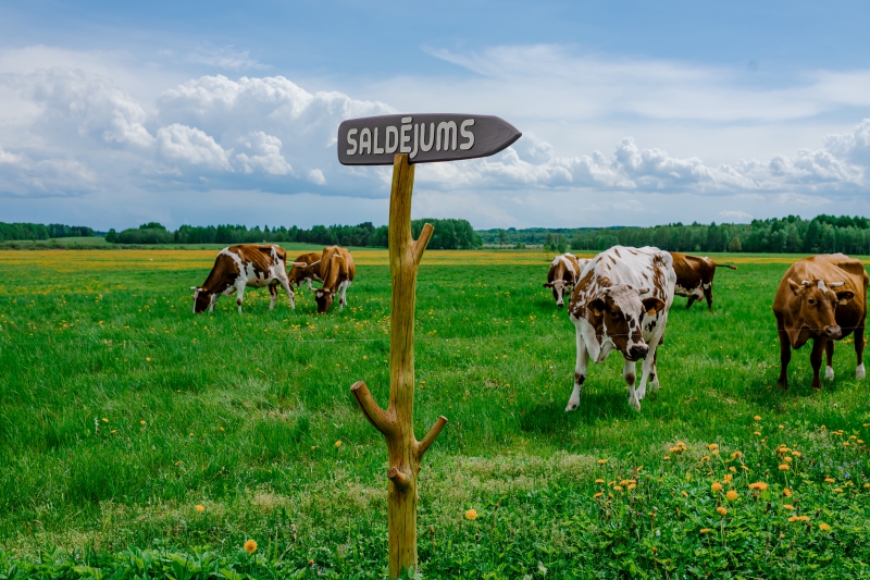 Saldējums tiek gatavots no īsta piena, kas iegūts savā saimniecībā, un dabīgiem produktiem, veidojot jaunu kvalitātes zīmi mājas saldējuma industrijā. Govis ganās Dvietes palienes bioloģisko vērtīgo zālāju pļavās.
