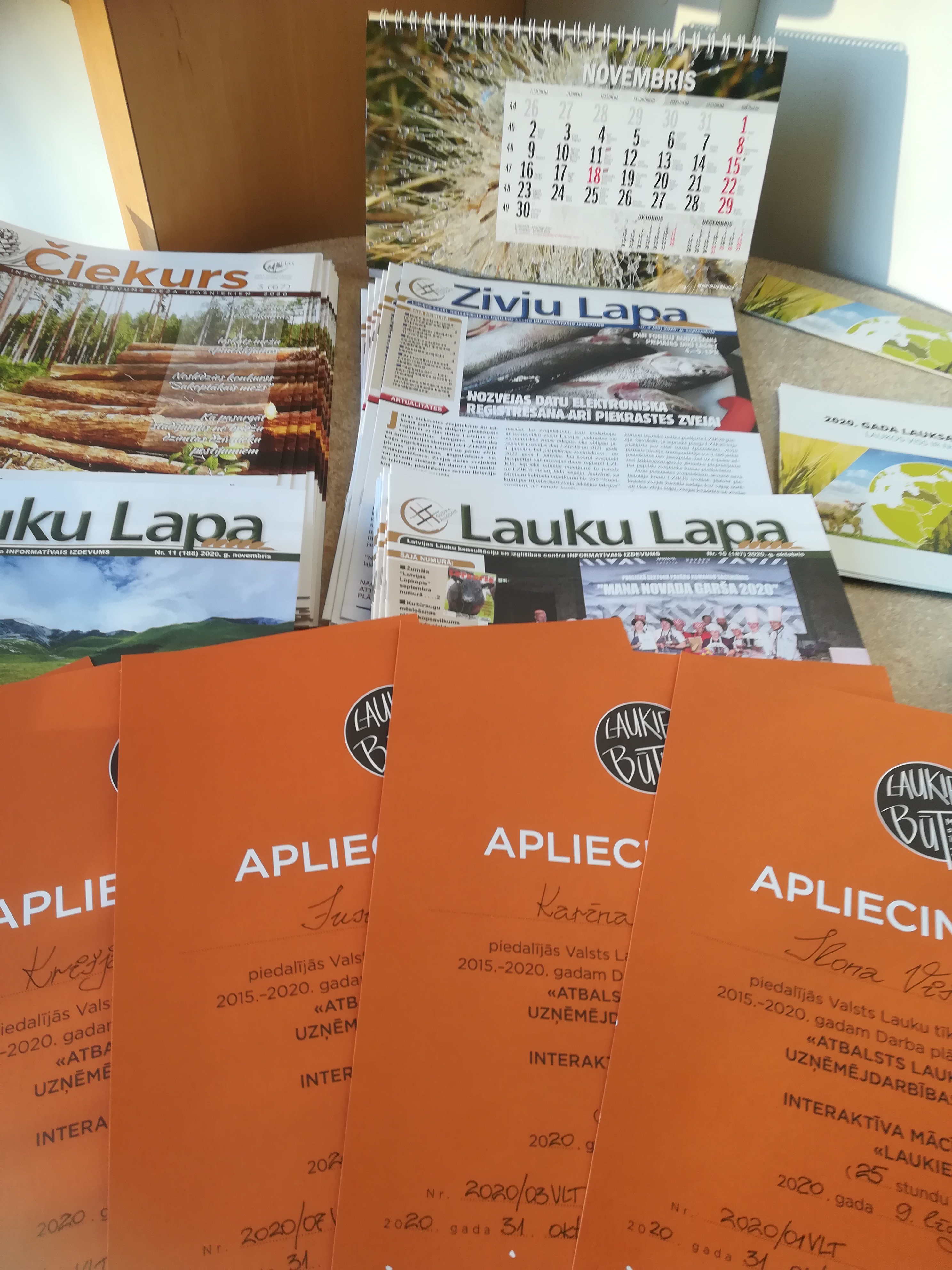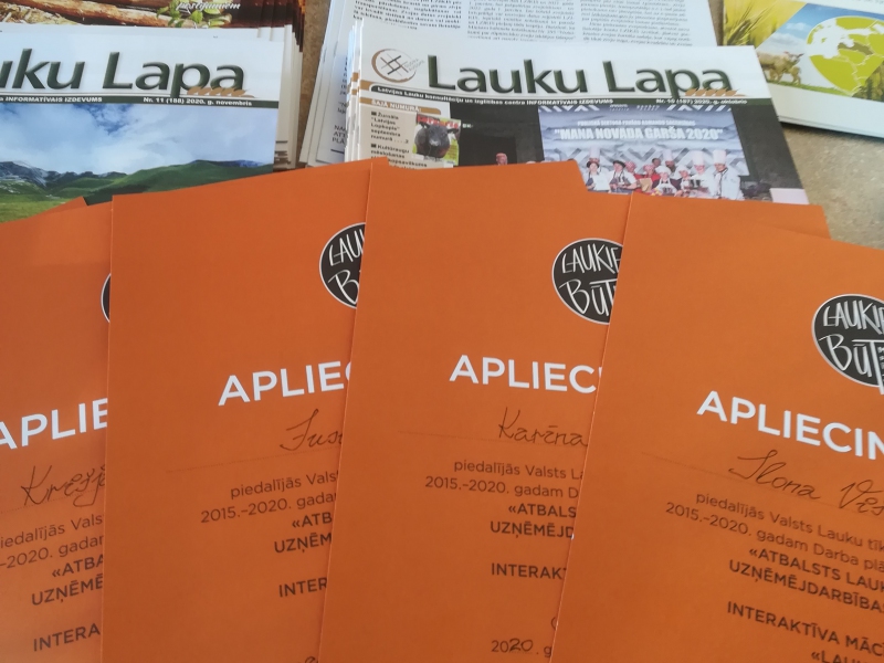 Mācību kursa noslēgumā dalībnieki saņēma apliecinājumus par piedalīšanos mācībās, kas dod “zaļo gaismu” dalībai biznesa ideju konkursā “Laukiem būt!”, kas norisināsies 2021. gadā.