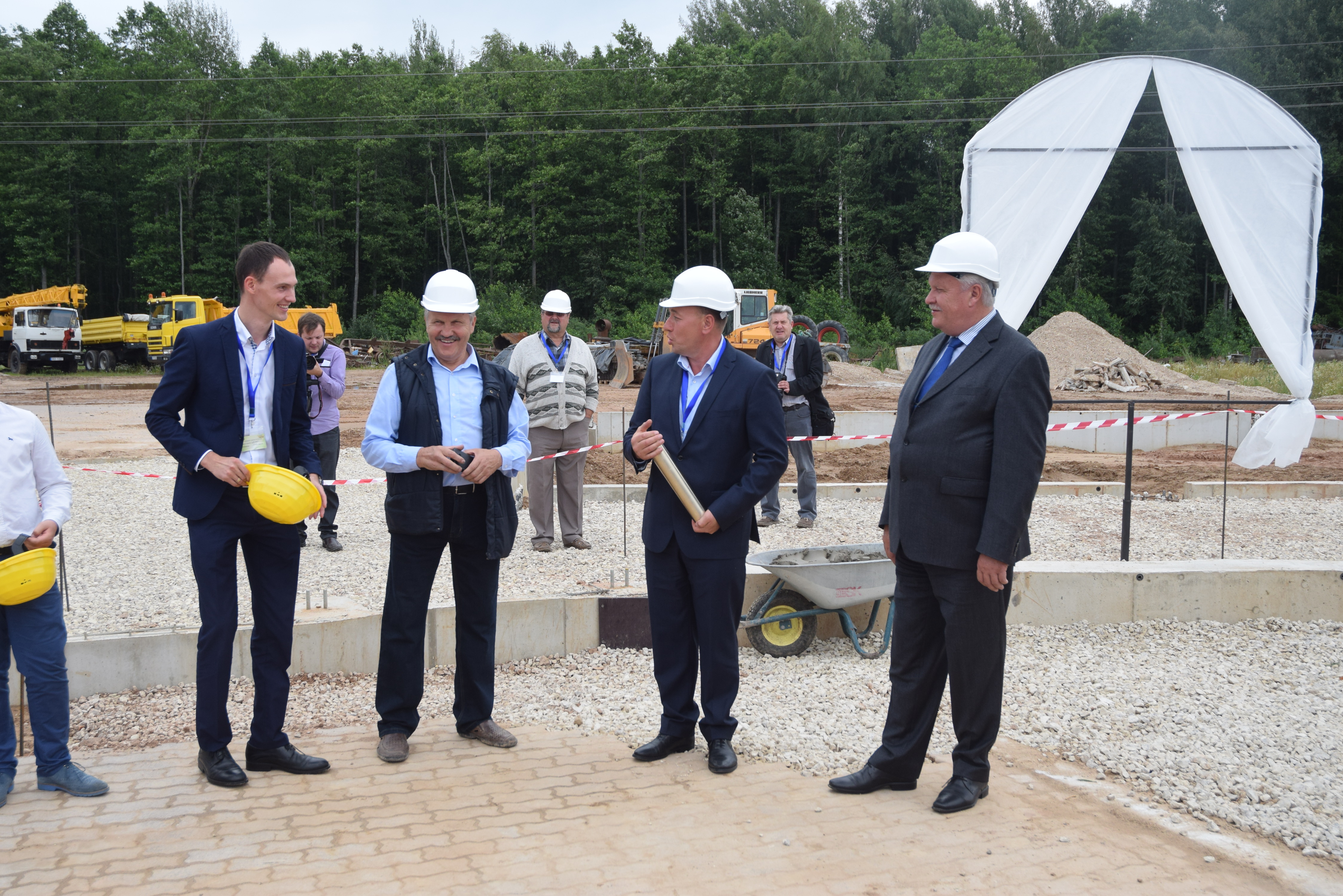Saimniecības īpašnieks kopā ar ģimeni un ciemiņiem iemūrēja jaunās graudu pārstrādes ēkas pamatos kapsulu, kurā bija ievietots vēstījums nākošajām paaudzēm.