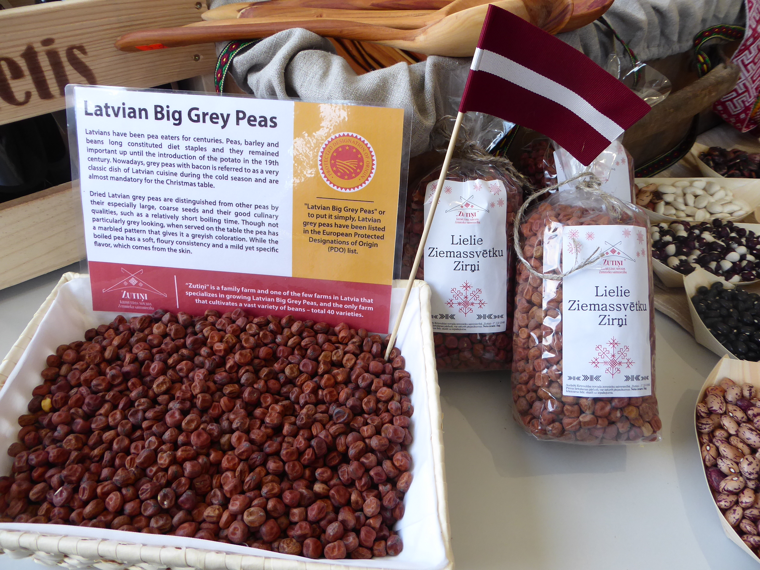 - “Zutiņi” ir viena no nedaudzajām saimniecībām, kas audzē lielo zirņu šķirni ‘Retrija’ un atbilstoši marķētus tirgo “Lielos Latvijas pelēkos zirņus”, kas iekļauti Eiropas aizsargāto cilmes vietas produktu reģistrā.
