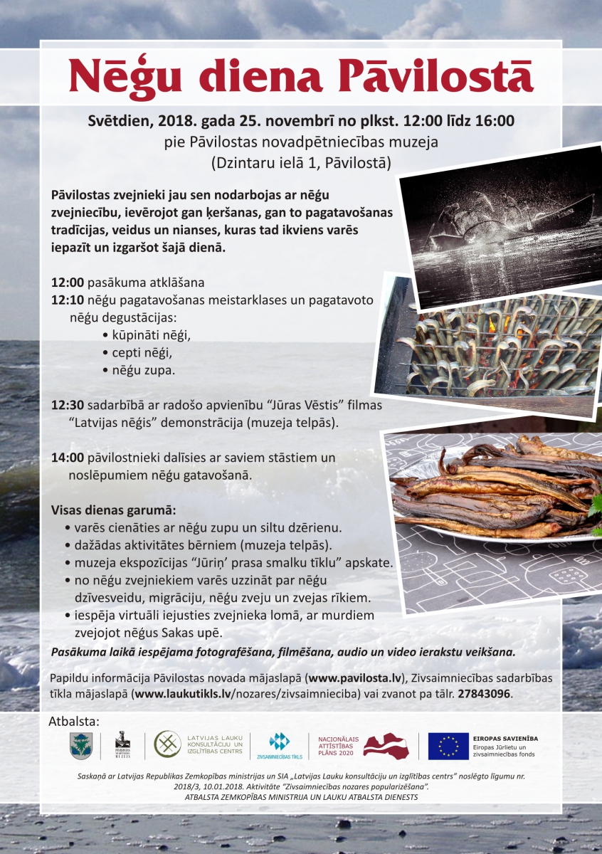 Svētdien, 2018. gada 25. novembrī no plkst. 12:00 līdz 16:00 pie Pāvilostas novadpētniecības muzeja (Dzintaru ielā 1, Pāvilostā) visi aicināti uz pasākumu "Nēģu diena Pāvilostā".