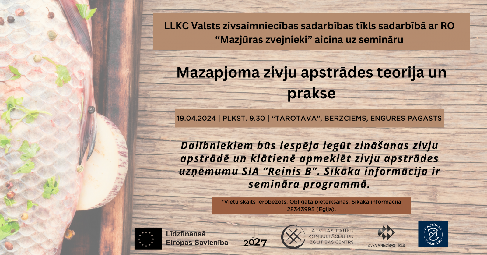 LLKC Valsts zivsaimniecības sadarbības tīkls sadarbībā ar RO “Mazjūras zvejinieki” aicina uz semināru “Mazapjoma zivju apstrādes teorija un prakse”.
