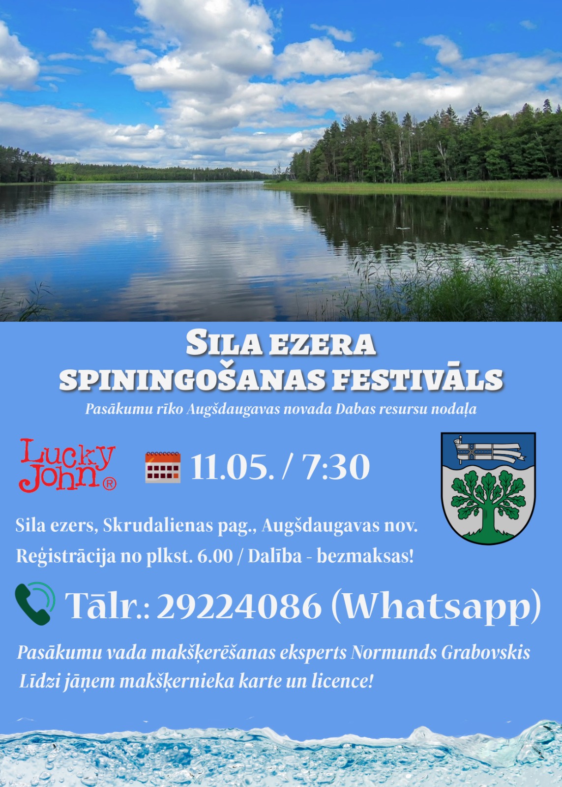 11.05. Aukšdaugavas novada Sila ezerā notiks superīgs spiningošanas festivāls ar sacensību azartu un lieliskām balvām no Lucky John un Augšdaugavas novada, bet bez sarūgtinājuma, ja nepieķerās sapņu zivs, jo... vērtīgākās balvas tiks izlozētas (nu jau tradicionāli) starp visiem sacensību dalībniekiem, kuri paliks uz apbalvošanas ceremoniju !!!