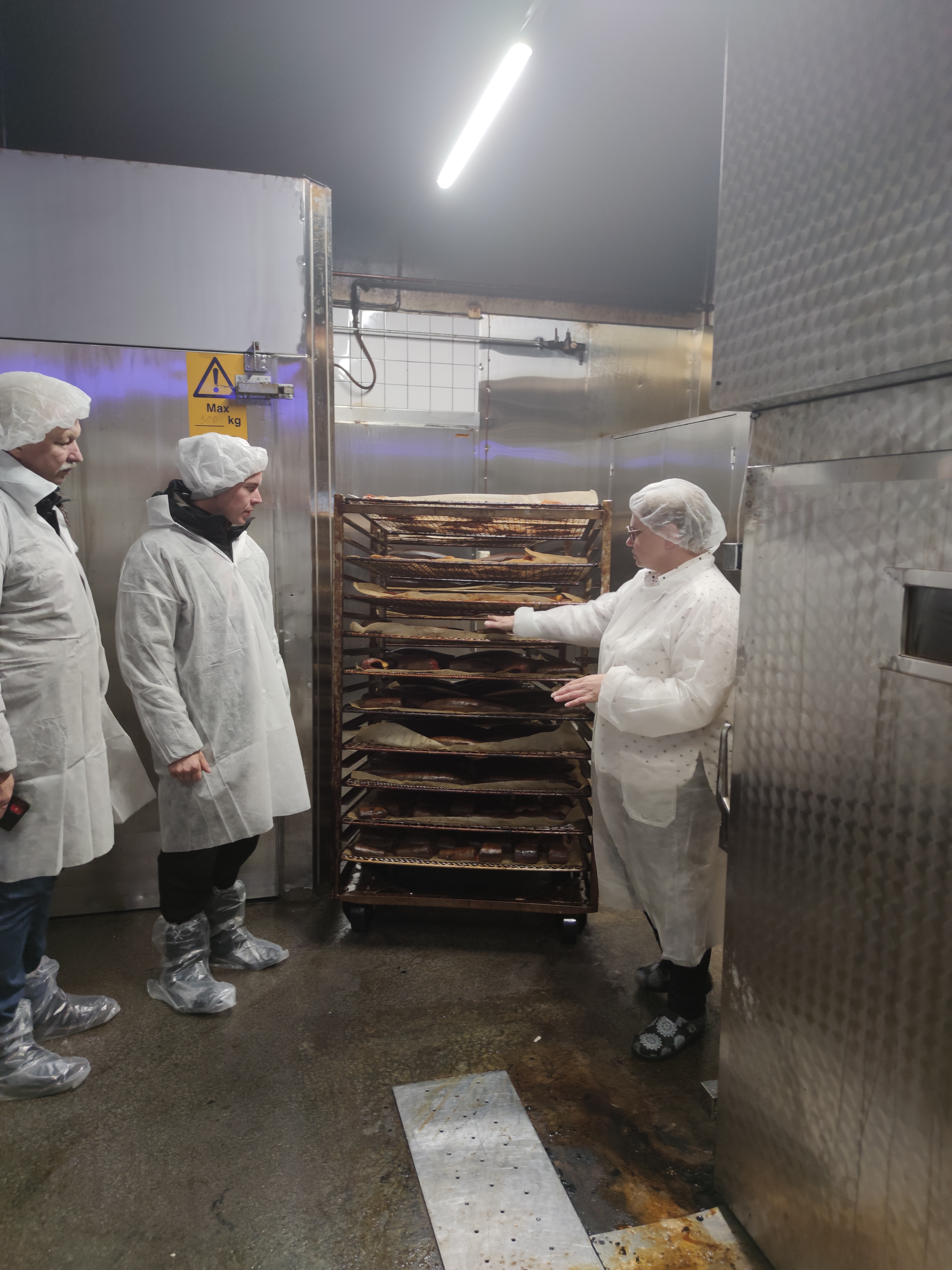Pirmajā brauciena dienātika apmeklēts zivju pārstrādes uzņēmums, zivju kūpinātava “Myrskylän Savu”, kas pārstrādā 4 tonnas zivju nedēļā. Tajā dalībniekus iepazīstināja ar vispārīgu informāciju par akvakultūras jomu un zivju resursu atražošanu Somijā. Zivju kūpinātavā tika apskatītas visas ražošanā izmantotās telpas. Uzņēmuma izpilddirektore Lilija Lepsa ne tikai aprakstīja galvenos zivju kūpināšanas procesus, bet arī padalījās ar savu pieredzi zivju pārstrādes jomā, skaidroja vairākas procesu detaļas un darbību ekonomisko pusi.