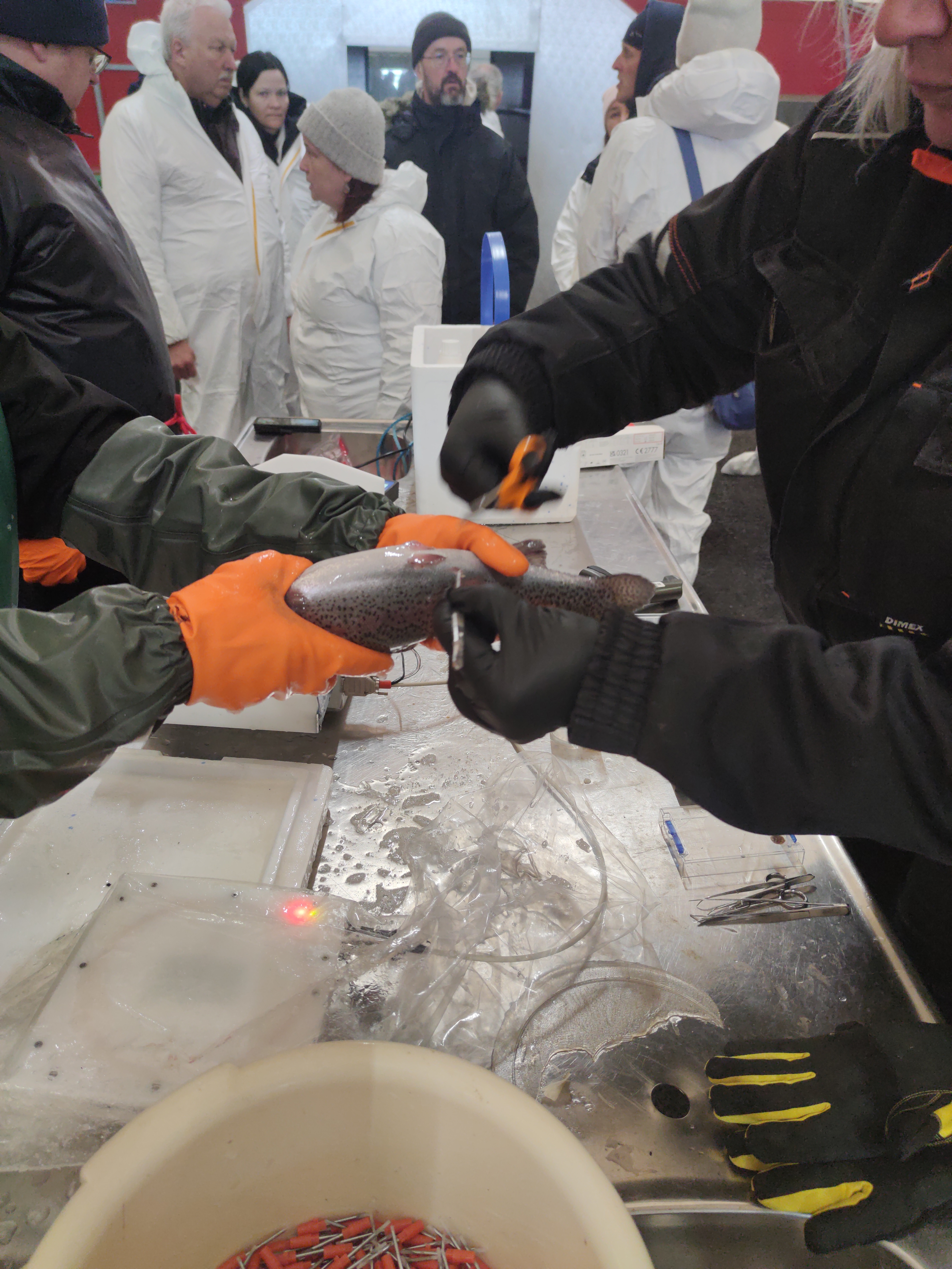 Nākamajā dienā tika apmeklēts Somijas dabisko resursu institūta “Luke” zivju audzēšanas un pētniecības centrs, kas nodarbojas ar pētniecību un nodrošina lašveidīgo zivju resursu atražošanu Somijas dienvidrietumu apgabalā. Centra ēkas ir nodrošinātas ar modernu infrastruktūru. Bija iespēja apskatīt recirkulācijas akvakultūras sistēmas (RAS), kurās notiek resursu atražošanai paredzēto varavīksnes foreļu, sīgu un citu zivju sugu ikru inkubācija, kāpuru iegūšana un mazuļu piebarošana. Papildus tika apskatīta sistēma ārpussezonas nārsta veikšanai. Akvakultūras grupas vadītājs Petri Heinimā sīkāk izstāstīja par sistēmu darbību, zivju mazuļu audzēšanas procesu un tā daļēju automatizāciju (piemēram, robotizētu mazuļu barošanu), biodrošības pasākumiem. Apmeklējuma laikā bija iespējams redzēt zivju iezīmēšanas un paraugu ņemšanas procesu ģenētiskās informācijas iegūšanai un tālākai analīzei.