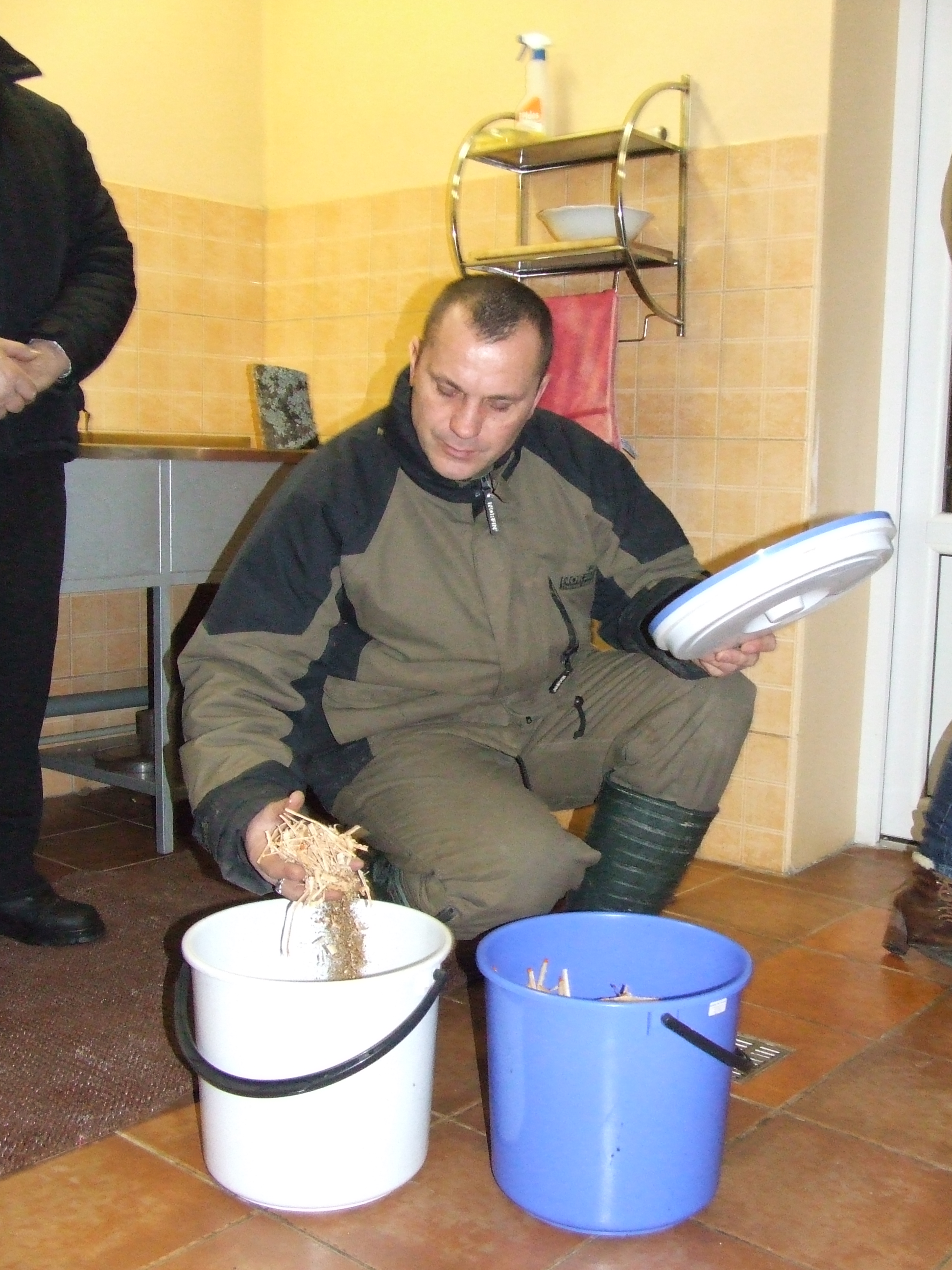 Pieredzes apmaiņas brauciena dalībnieki ar lielu interesi klausījās Gundara Kalves stāstījumā. Saimnieks neliedza savu padomu un mudināja kļūt par aktīviem zivkopjiem. Katram dalībniekam bija iespēja uzdot jautājumu un konsultēties par savu dīķi, reljefu un zivju sugām.