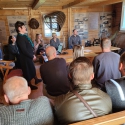 Ainārs Daudziešans, SIA “Krupis” pārstāvis, turpinājumam aicināja pārcelties ārpus telpām, kur kopā ar savu stāstu par nēģu zveju demonstrēja ES pārtikas kvalitātes shēmas “Carnikavas nēģi” zvejas produktu apstrādes iespējas dažādos apstākļos, konkrēti pārvietojamās krāsns pielietojumu.