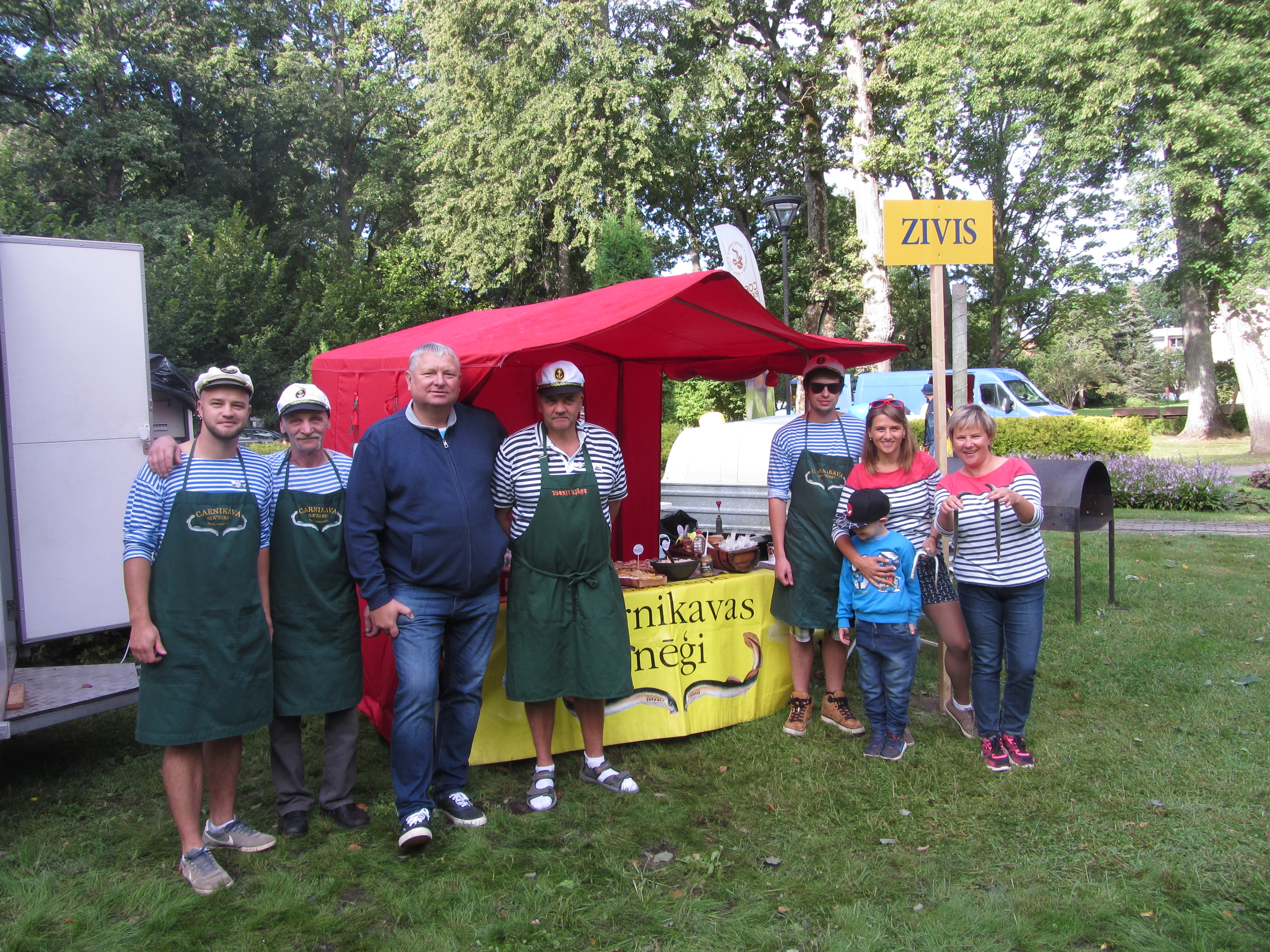 „Noskaņojums labs, svētki taču! Šonakt beidzot “iepūta vajadzīgais vējš”, un zvejnieki varēs normālā daudzumā piegādāt svaigos nēģus mums cepšanai. Un šie svētki nav iedomājami bez svaigi ceptiem Carnikavas nēģiem, želejā jau veikalos tie bieži nopērkami,” stāsta Ginta Miglāne, kura pārstāv SIA “Zibs”. Uzņēmums svētkos strādā katru gadu, arī šogad kuplā pulkā, pat mazdēls Gustavs piedalās procesā.