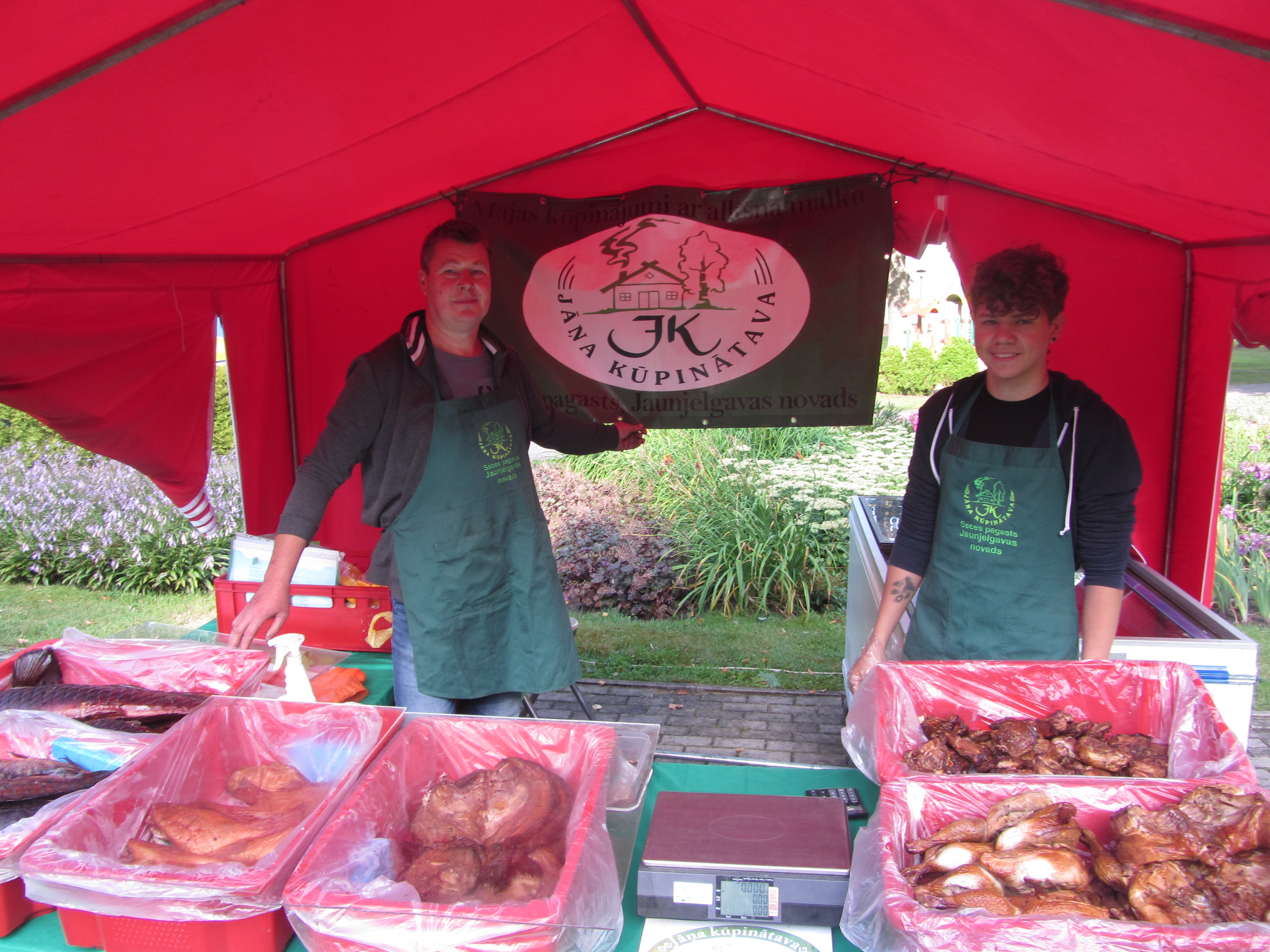 Savukārt Ilmāra Prauliņa uzņēmuma IK “Gundegas IP” meitenes čakli smērē maizītes, ko piedāvāt pircējiem. Blakus nēģiem želejā zivju klāstu stendā papildina dažādāko veidu kūpinājumi. Gaļina Prauliņa skaidro: “Baidījāmies, ka stends izskatīsies trūcīgs, jo gatavo nēģu želejā ir pamaz. Ceram uz svaigajiem, ko Ilmārs (uzņēmuma īpašnieks) atvedīs no zvejniekiem un ceps tepat uz vietas. Carnikavas zvejniekiem Nēģu karalis šonakt bijis labvēlīgs un devis tik daudz, cik visās iepriekšējās mēneša dienās. Būs labi, galvenais, lai lietus nelīst un viesiem laba apetīte!”