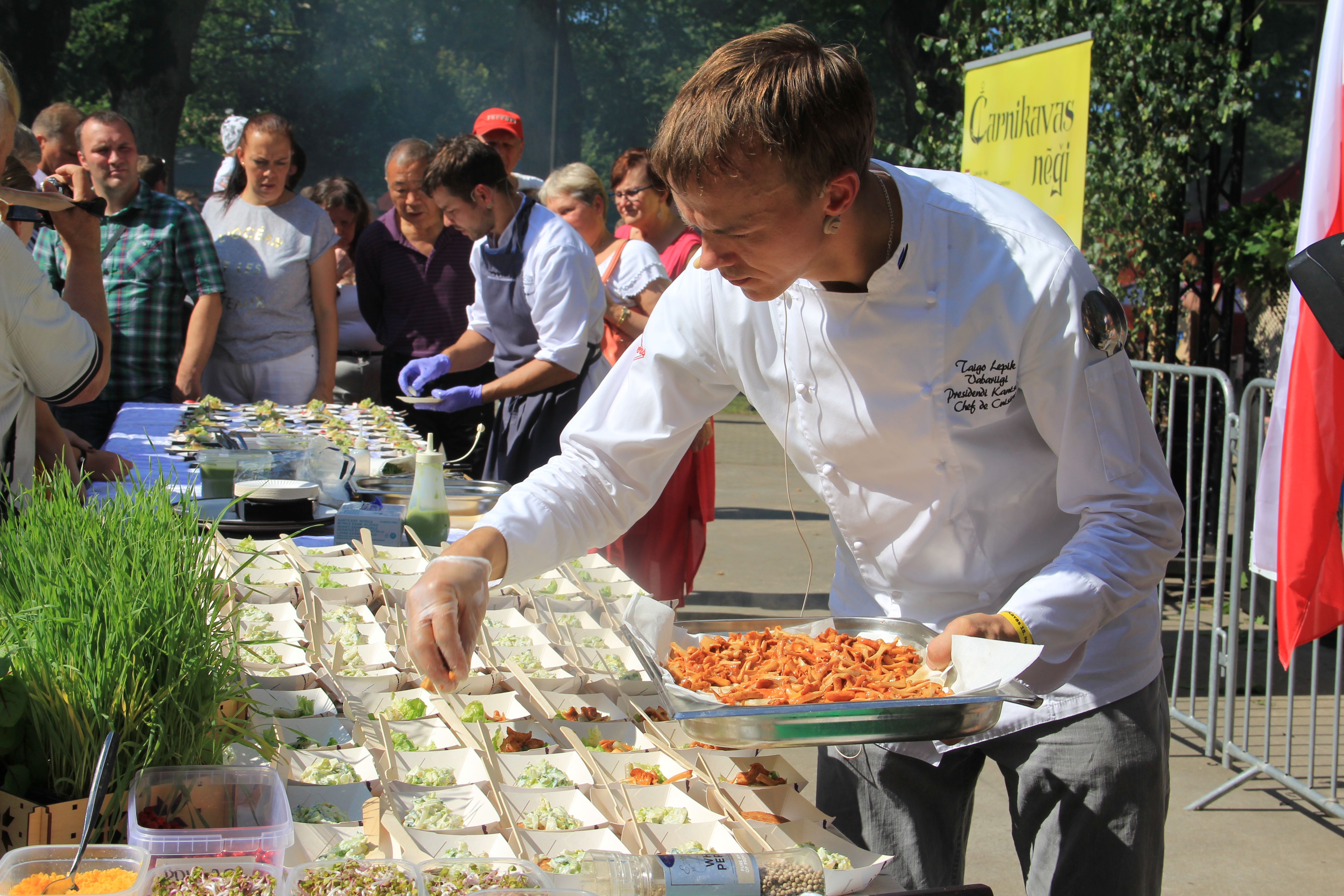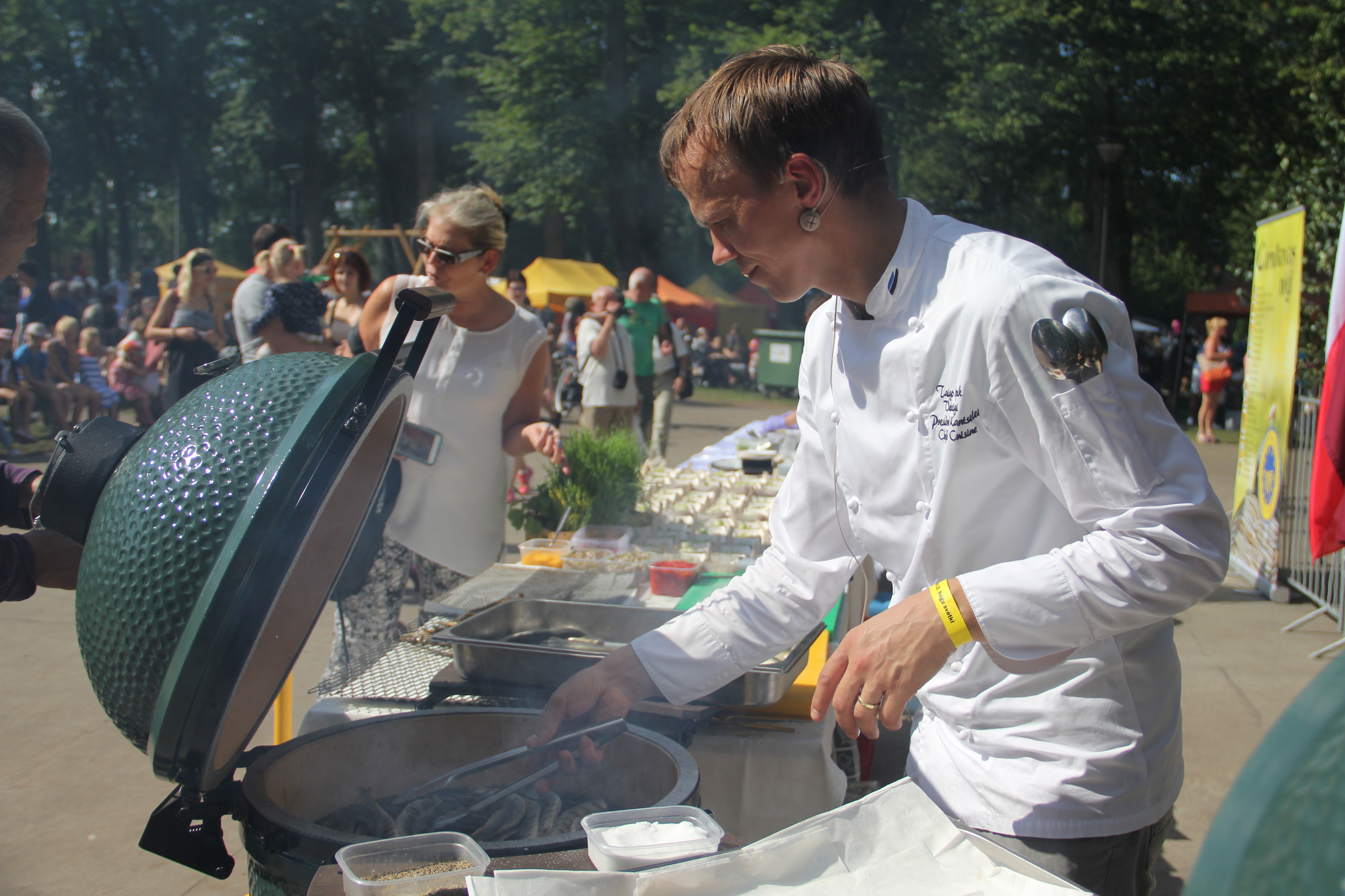 Bez vietējiem cepējiem Muižas ostā savu māku gatavot nēģus demonstrēja Igaunijas prezidenta šefpavārs Taigo Lepiks un “Muusu” restorāna šefpavārs Kaspars Jansons.