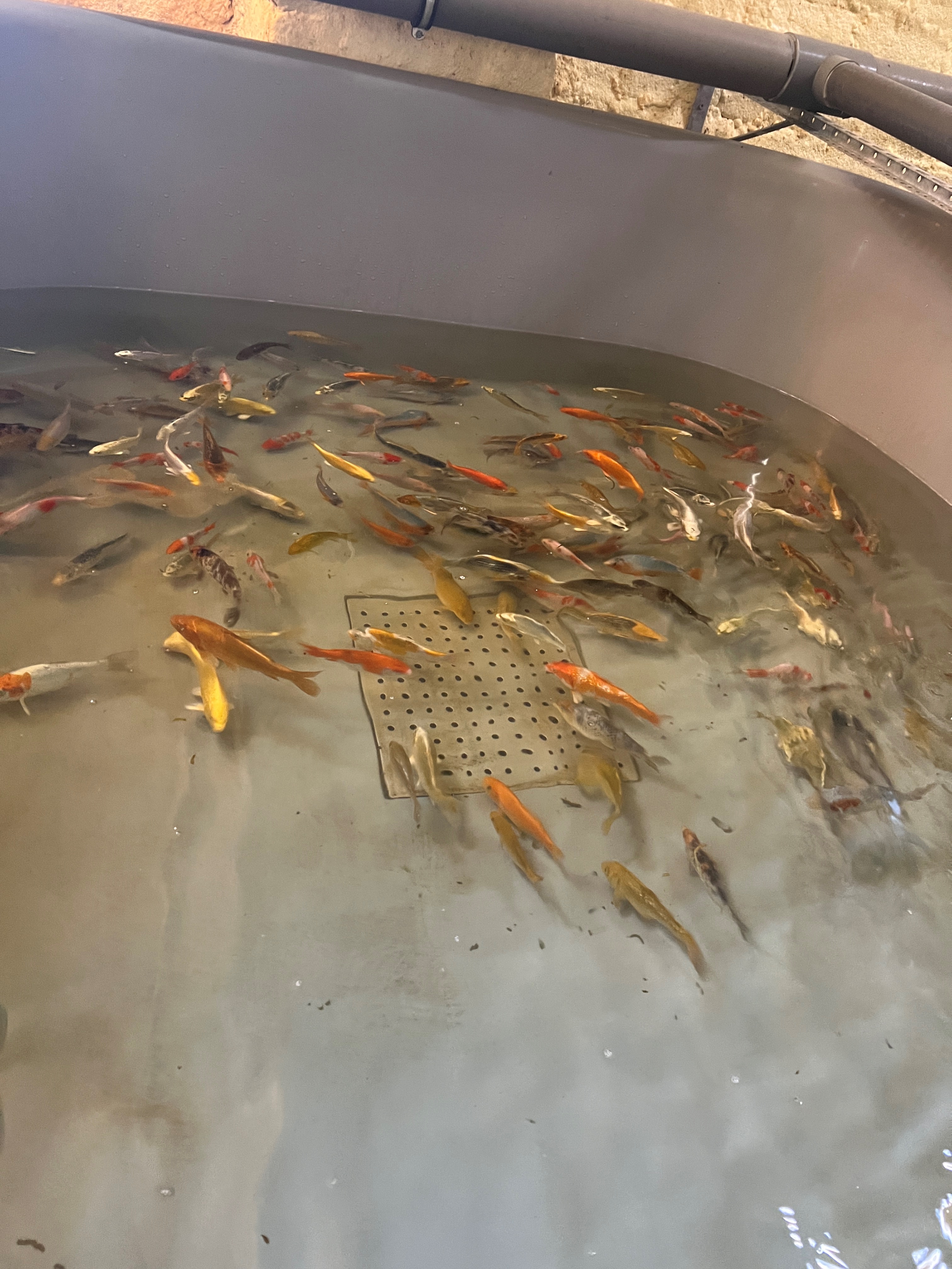 Komiski gājis ar zivju audzēšanas iesākumu pieguļošajā saimniecības teritorijā. Zivis no dīķiem naski nesuši prom ūdri. Izlemts par labu elektriskajam ganam, bet, kas tev deva – ūdru “darbošanos” turpināja kaijas, kas naski patīrīja dīķa saturu. Lai vai kā, apskatīties zivju baseinus bija patiesi interesanti, jo tādu daudzveidību un krāsainību nevarējām pat iedomāties.