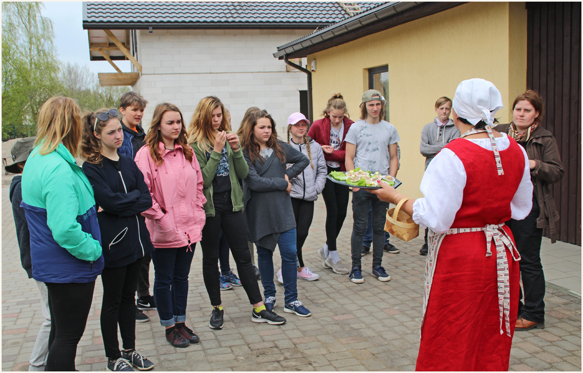 Lapmežciema muzejā varēja aplūkot interesantu ekspozīciju, kas līdzīga mūsu – Carnikavas novada – muzejā redzētajam, proti, piekrastes zvejnieku seno māju iekārtojumu. Bērni aplūkoja senas fotogrāfijas, minēja, kas ar senajiem darba rīkiem darīts jūrā un zvejnieku virtuvē. Tālāk ceļš veda uz mājražotāju uzņēmumu “Reinis B”, kas Latvijas tirgum ražo 30 dažādus zivju izstrādājumus no mūsu pašu izejvielām un arī no ievestajām. Jaunieši tika iepazīstināti ar ceha darbu, – kā zivis tiek tīrītas, kā tiek sagatavotas kūpināšanai. Saimniece stāstīja, kā tiek radītas receptes, izmēģinātas un tikai tad piedāvātas tirgū. Ražotnē visi darbi tiek veikti ar rokām. Uzņēmums piedalās Latvijas gadatirgos, produkciju var nopirkt arī pašā ražotnē. Lai kaut nedaudz saprastu, cik viegli vai grūti ir ikdienas darbi, bērniem bija sagatavoti dažādi uzdevumi – reņģu vēršanas sacensības un zivju atpazīšana. Lai gluži kā mācību stundā noskaidrotu, cik skolēni ir uzmanīgi klausījušies, bija jāmin krustvārdu mīklas. Uzņēmumā “Reinis B” visiem bija iespēja nogaršot dažādus zivju izstrādājumus, izvēlēties, kuri ir gardākie. Nācās secināt, ka ne visi jaunieši uzturā lieto zivis. Daži atzina, ka baidās no asakām, citi, ka nepatīk aromāts un garša.