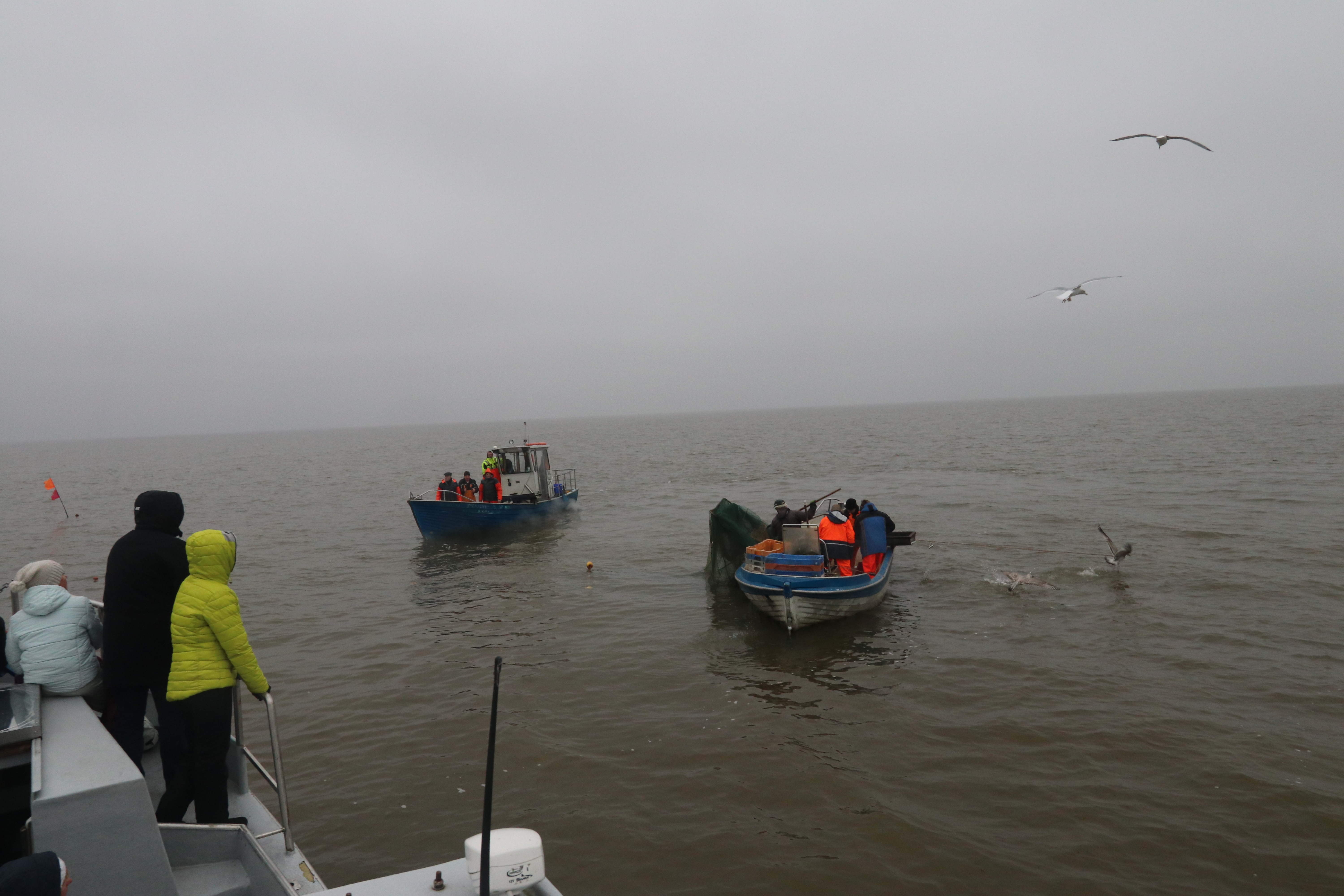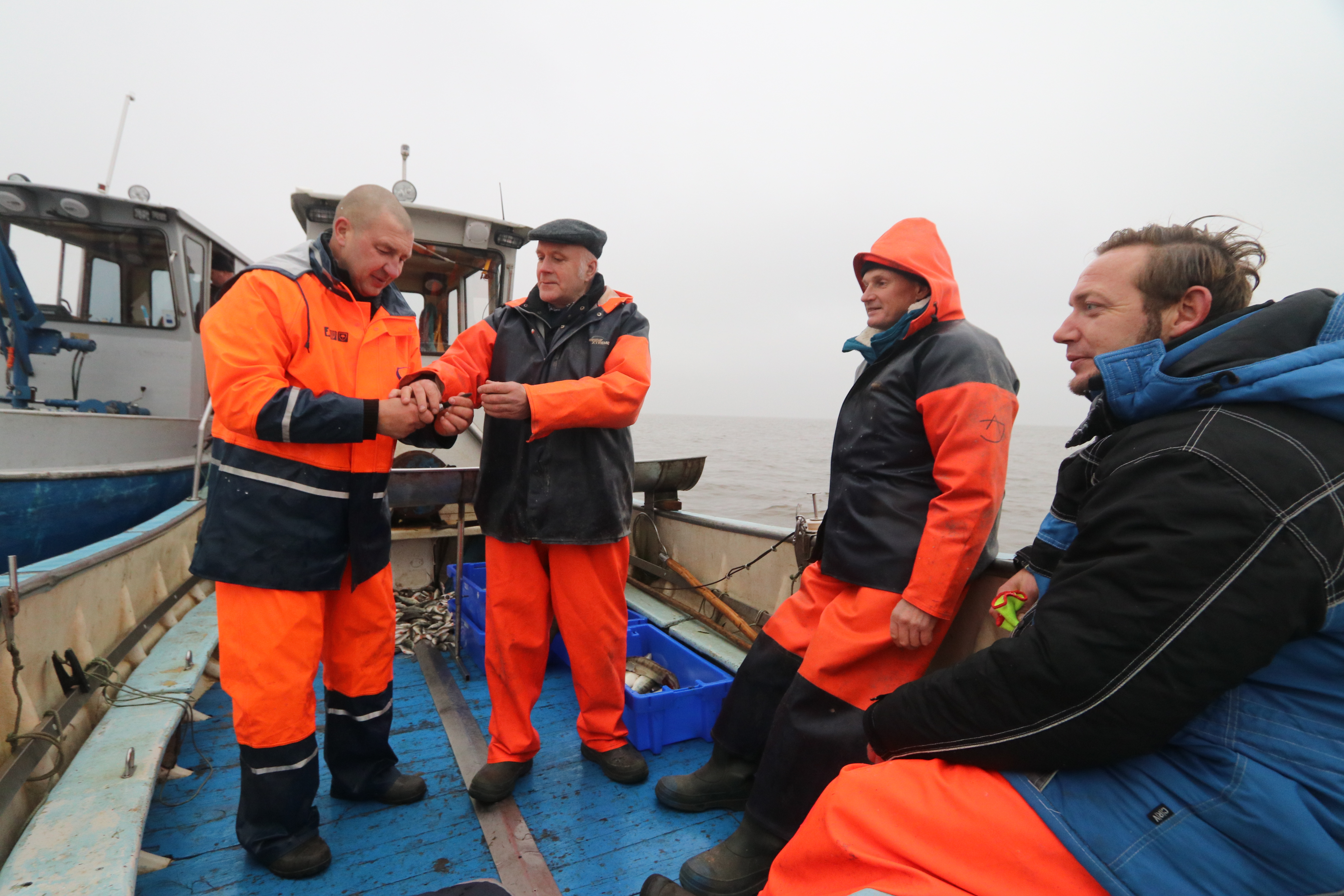 Zvejniekiem bija iespēja iepazīties ar vienīgo sievieti Pērnavas apriņķī, kas ir piekrastes zvejniece. Vietējie bija sagatavojuši zvejas kuģus un speciālo apģērbu ciemiņiem, lai varētu doties zvejā, sadaloties divās komandās. Zveja ievilkās līdz melnai naktij, jo bija jāmēro lieli pārbraucieni no murda līdz murdam. Lielākoties murdos bija asari, zandarti un reņģes. Igaunijas zvejnieki rūpīgi seko līdzi zivju lielumam, lai tas atbilstu standartiem. Mazākas zivis uzreiz tiek atlaistas atpakaļ, jo par šo likumu normu neievērošanu divas reizes draud licences atņemšana.