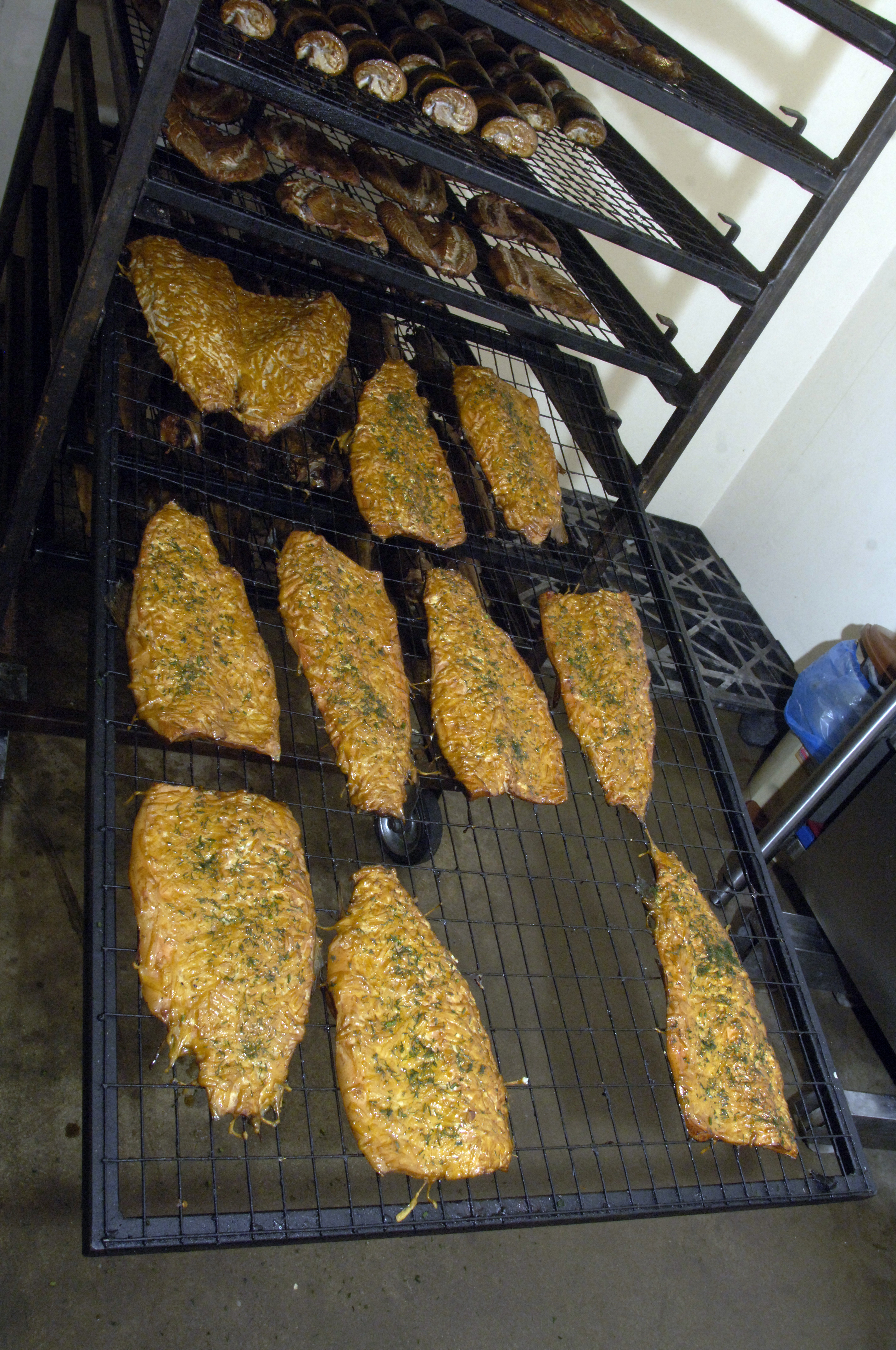 Kūpinātavas produkcijas klāstā ir 26 veidi. Kad ierodamies uzņēmumā, tiek kūpināti jūras asari, vēdzeles, karpas, brekši, foreles, mencas. Arī skumbrijas – vairākos veidos: rullīšos, ar sieru, ar sīpoliem un dārzeņiem, ar ķiplokiem. Problēma līdz šim bijusi ķiploku tīrīšana, kas ir sarežģīta un darbietilpīga. Agrāk to veikusi Allas mamma, taču tagad, par laimi, ir uzņēmums, kas piedāvā vakuuma iepakojumā jau tīrītas daiviņas. Tikai jāsasmalcina. Kūpināšana notiek tieši pirms plānotās izbraukuma tirdzniecības.