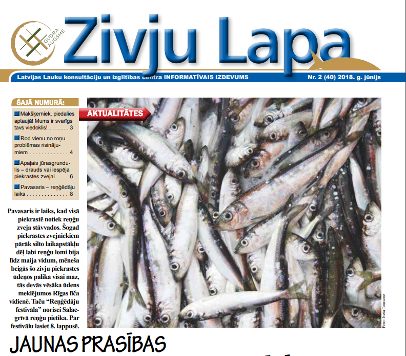 Šajā numurā Latvijas Zemkopības ministrijas speciālisti skaidro jaunās zvejas un jūras akvakultūras produktu izsekojamības kontroles prasības. Tās stājas spēkā 2018. gada 1. jūnijā un nosaka produktu elektronisko izsekojamību tirgū un datu par darbībām ar produktiem ievadīšanu informācijas sistēmā.