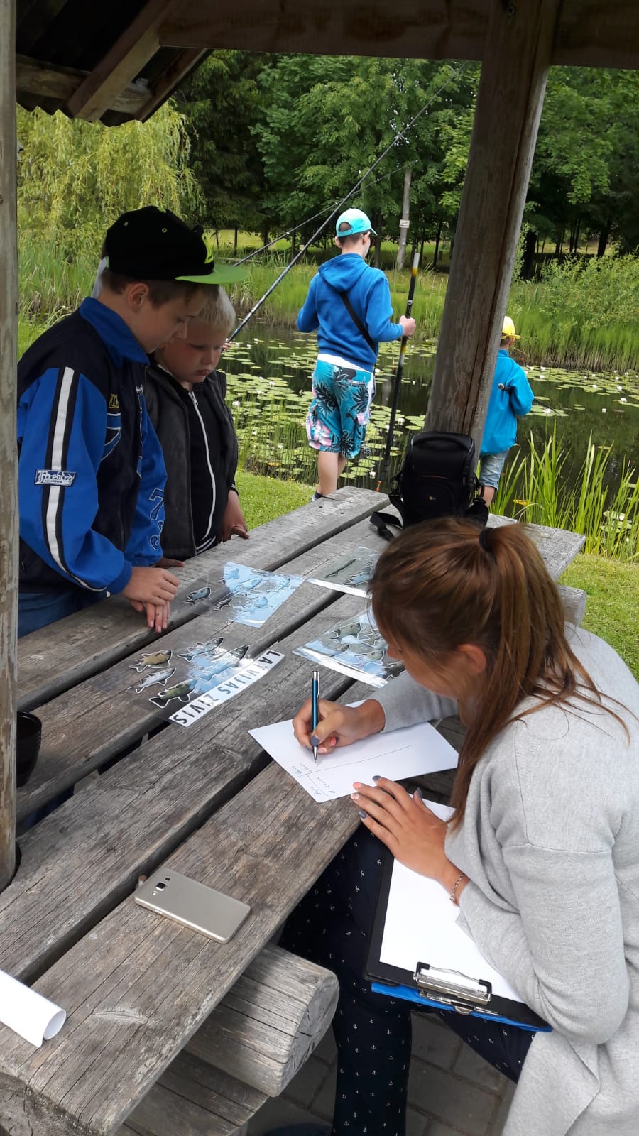 Izrunājot visu par makšķerēšanu un zivju barošanu, tālāk skolēni devās uz dīķi praktiski izmēģināt savas līdzi paņemtās makšķeres. Daļai skolēnu makšķernieka pavadībā tika sagatavotas un pārsietas līdzpaņemtās makšķeres. Nepaejot ilgam laikam, zivis sāka ķerties. Lielākie entuziasti noķēra vairāk par desmit zivīm. Lai noķertās zivis spētu atpazīst, skolēniem tika sagatavots uzdevums „Atpazīsti Latvijas zivis”. Mazajiem makšķerniekiem uzdevums nebija viegls. Savukārt pieredzējušiem makšķerniekiem uzdevums grūtības nesagādāja. Kā jau īstā makšķernieku pasākumā, neiztikt bez „Zābaka mešanas”. Daļa skolēnu izmantoja iespēju un pārbaudīja savu fizisko spēku disciplīnā.