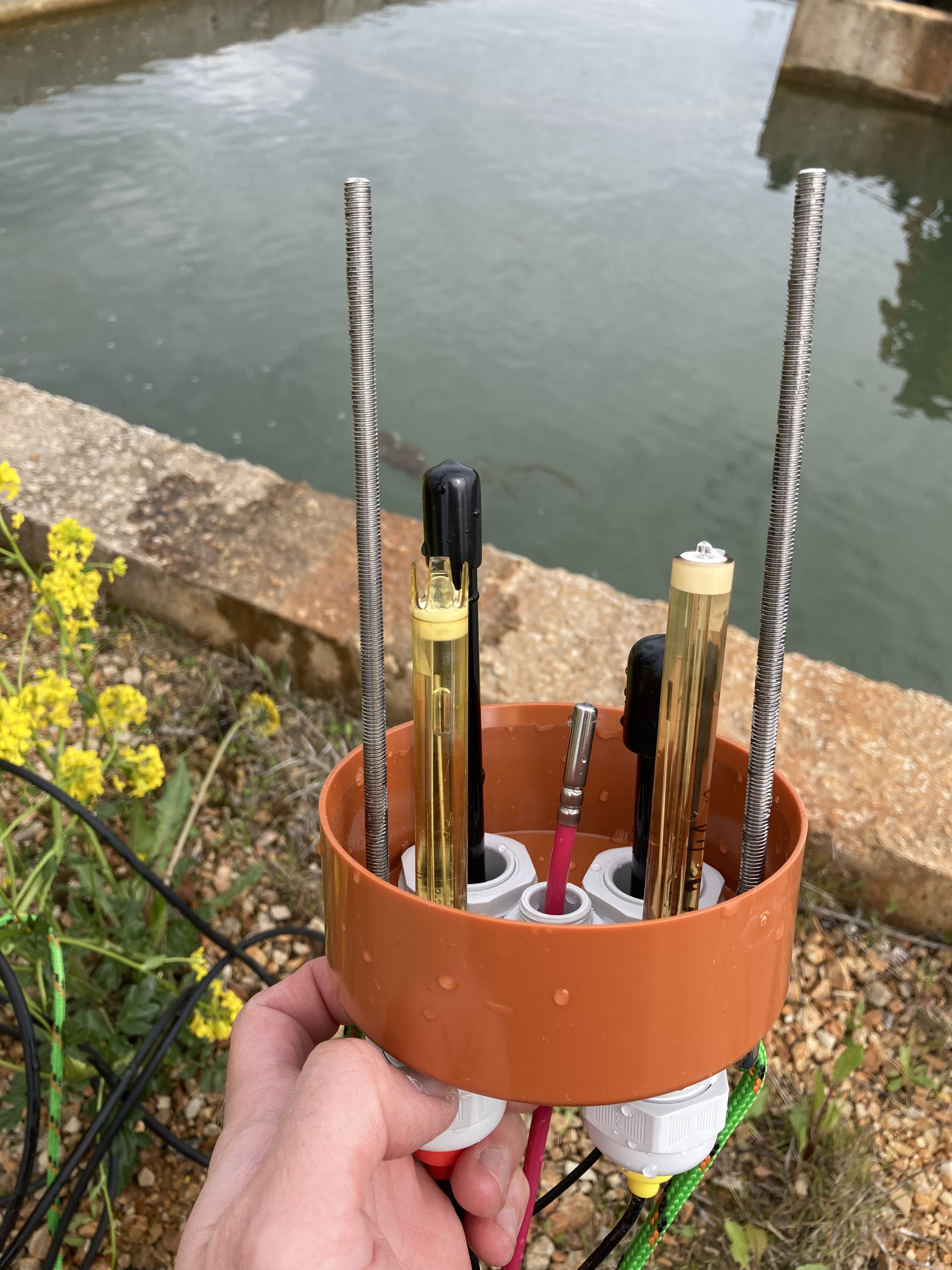 * modulārus devēju mezglus, kas tiek izvietoti ūdenstilpēs un spēj pārraidīt datus par svarīgākiem ūdens kvalitātes parametriem (izšķīdušais skābeklis, temperatūra, pH, ORP, vadītspēja) attālumos līdz 10 km;