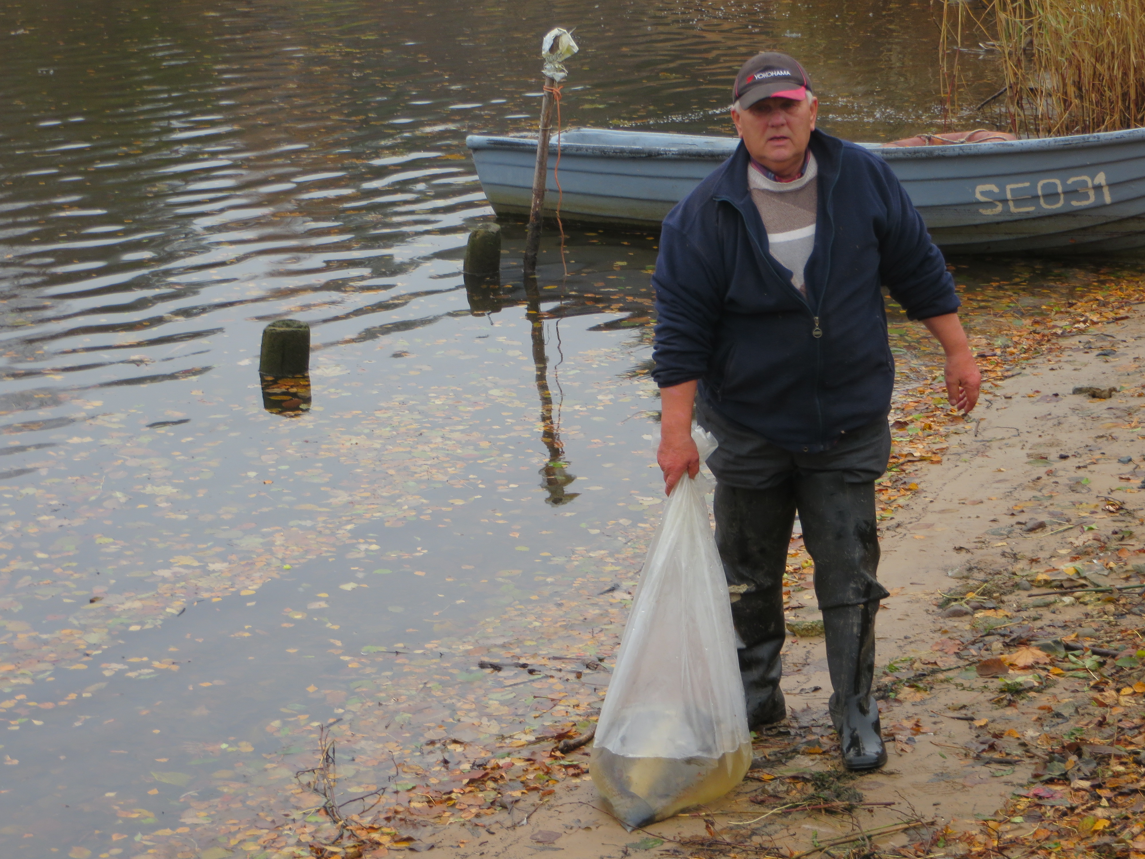 Apskatot sakopto Skultes ostu, esam liecinieki tam, kā zvejnieki ostas akvatorijā ūdenī iegremdētajā sprostā ielaiž taimiņu vaisliniekus, kuri pēc tam aizceļojot uz zivju audzētavu, lai tos izmantotu sugas pavairošanā. Agris Lapiņš atzīst, ka nedrīkst tikai ņemt no dabas, bet ir arī jādod atpakaļ.