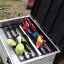 Labākajiem makšķerniekiem balvās tika LLKC Zivsaimniecības nodaļas sarūpētais – lietusmēteļi, cepurītes, blociņi un makšķerēšanas piederumu kastītes. Katram tika plakāts “Latvijas zivis”. Viens puisis izskatījās laimīgs un teica, ka tādu piederumu kastīti jau sen vēlējies, un tagad ļoti priecājās.