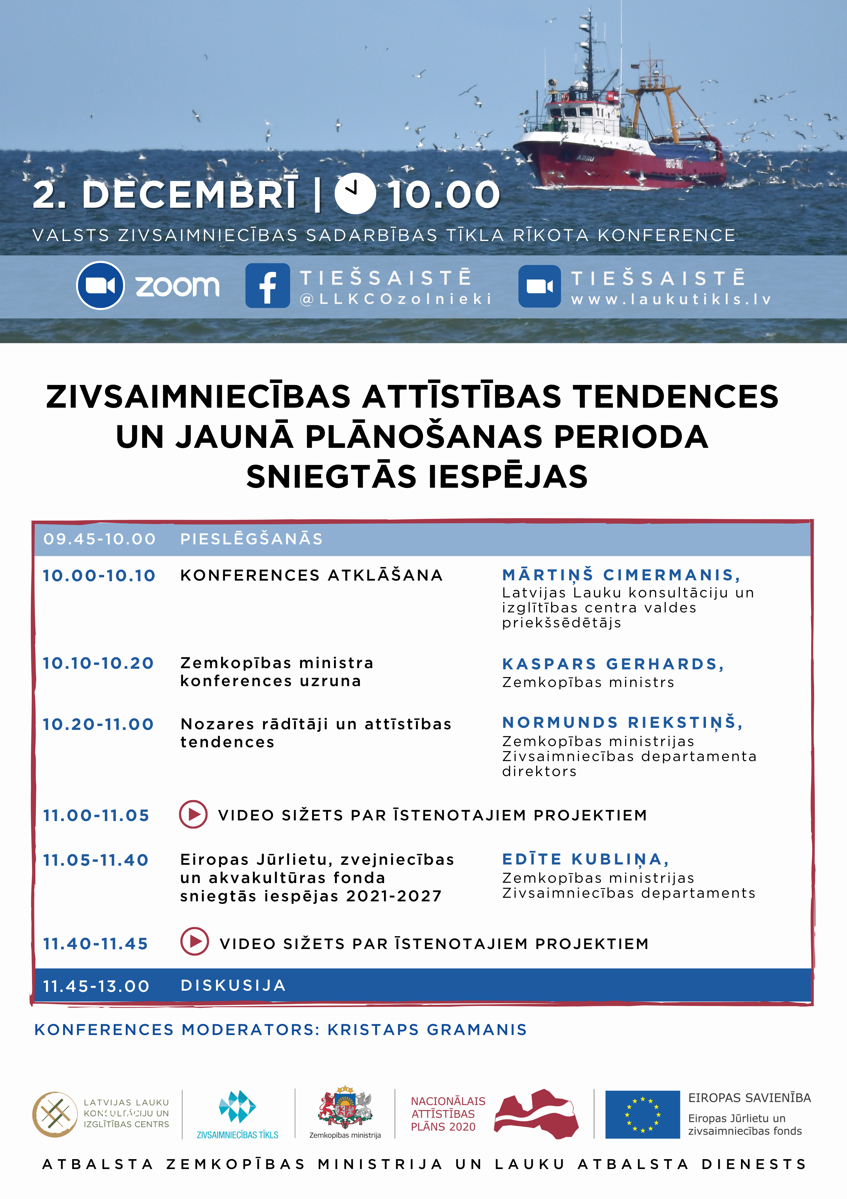 2. decembrī notika Latvijas Lauku konsultāciju un izglītības centra (LLKC) sadarbībā ar Zemkopības ministriju (ZM) organizēta ikgadējā zivsaimniecības konference "Zivsaimniecības attīstības tendences un jaunā plānošanas perioda sniegtās iespējas".