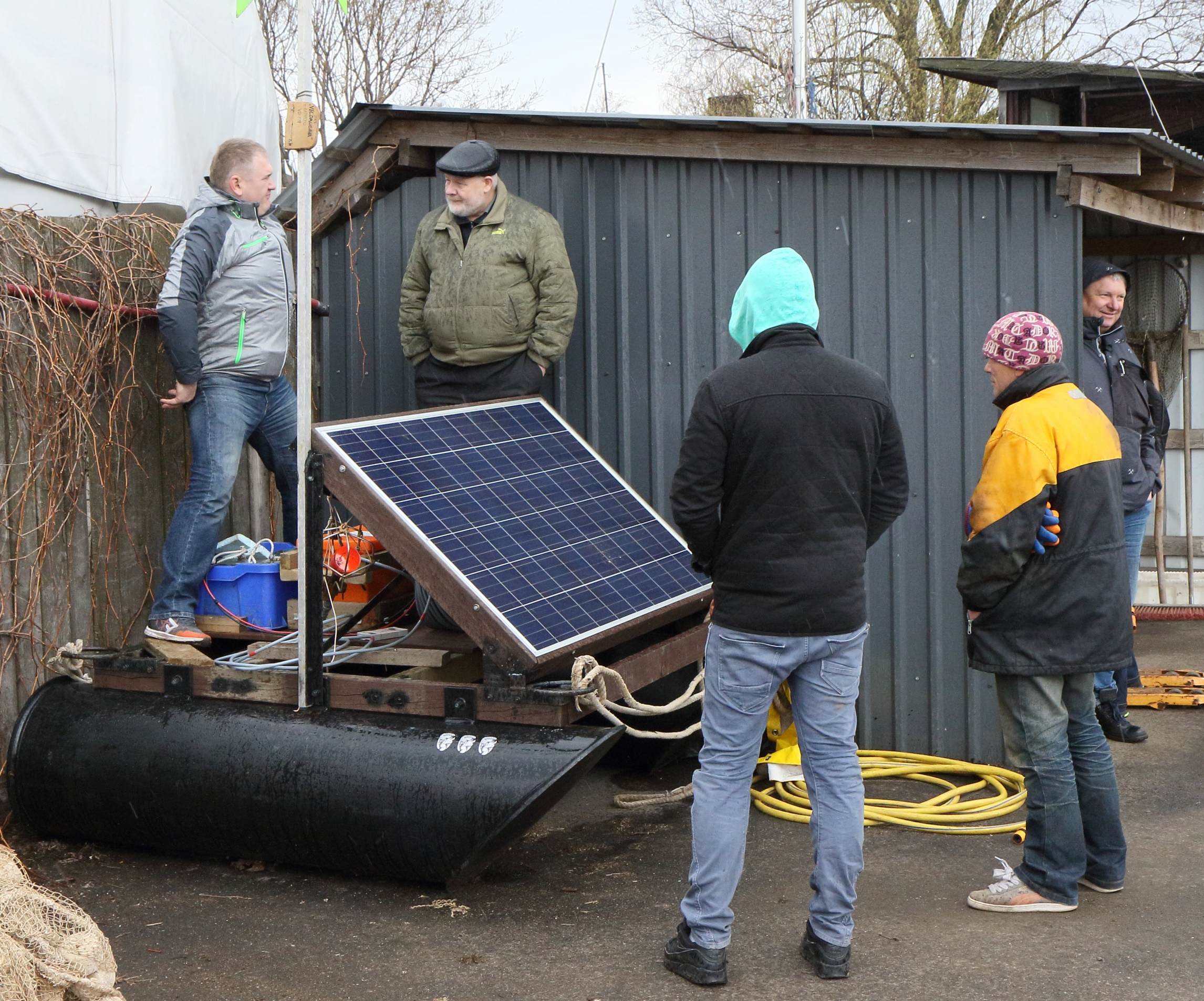 – Vispirms iepazināmies ar jau esošo risinājumu, kas tiek izmantots Latvijā. Kopā ar LLKC pārstāvi aizbraucām pie KS “Vecdaugava” zvejniekiem, lai novērtētu, kā dzīvē izskatās tirgū pieejams produkts un kādā veidā tas tika pielāgots mūsu apstākļiem. Secinājums bija par labu projekta izvirzītajiem mērķiem, – ar visu savu ierobežoto funkcionalitāti zvejniekiem piegādātais produkts prasīja milzīgas pūles, adaptējot to piekrastes zvejnieku vajadzībām. Tika uzbūvēts plosts uz pontoniem, ierīkoti akumulatori, saules panelis ar lādētājiem utt.
