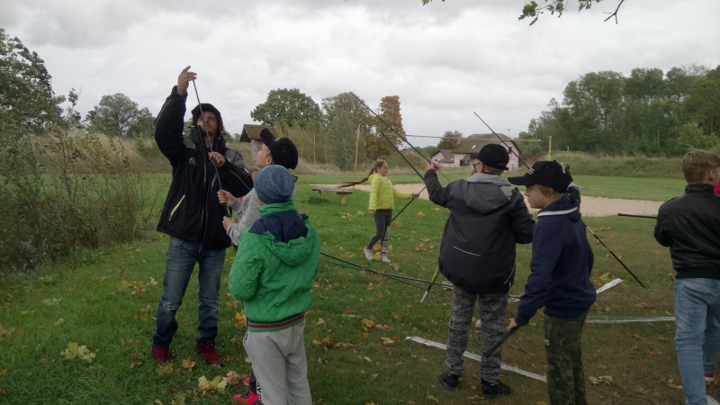 Tumē skolēni apgūst makšķerēšanas pamatprincipus
