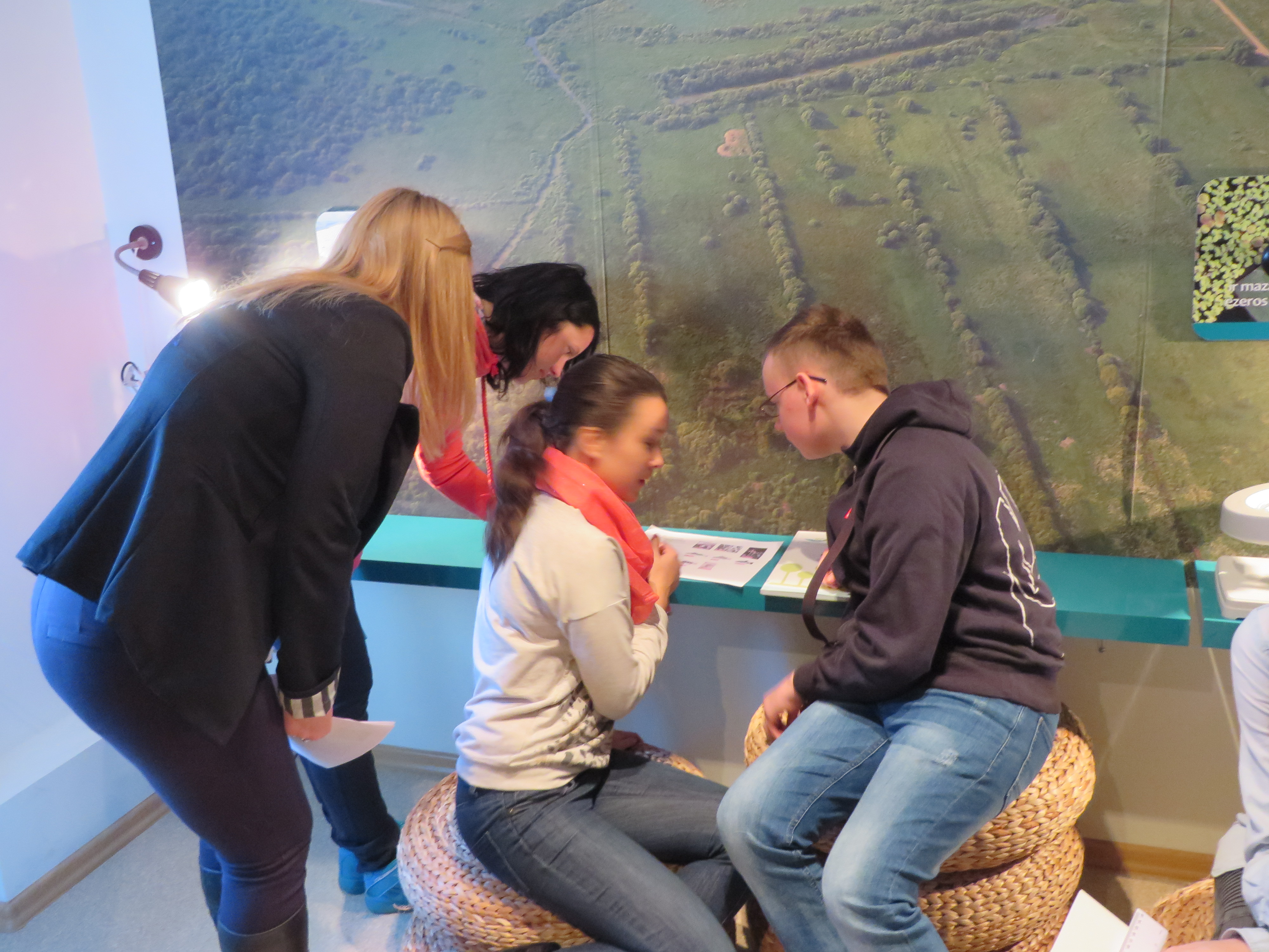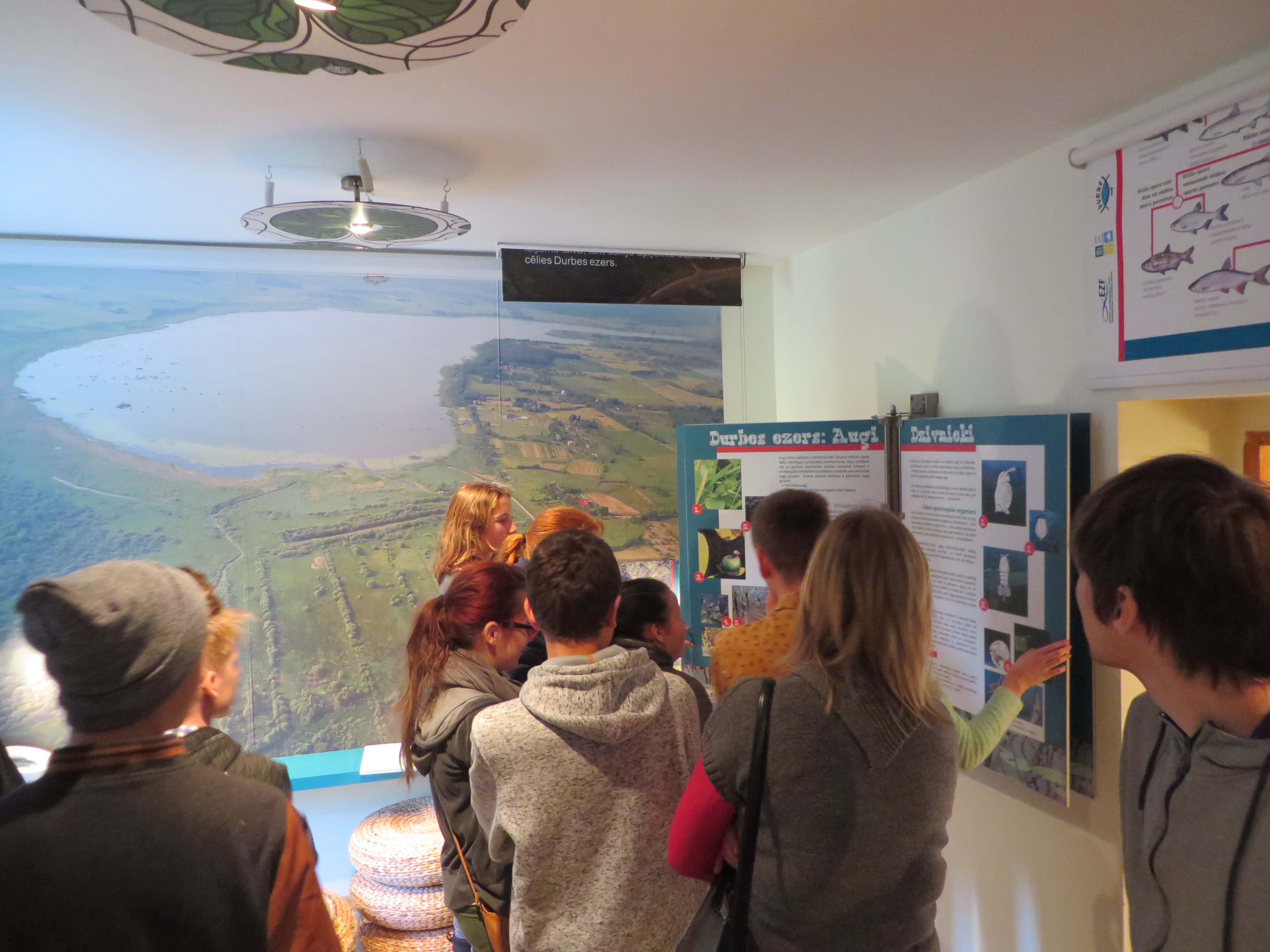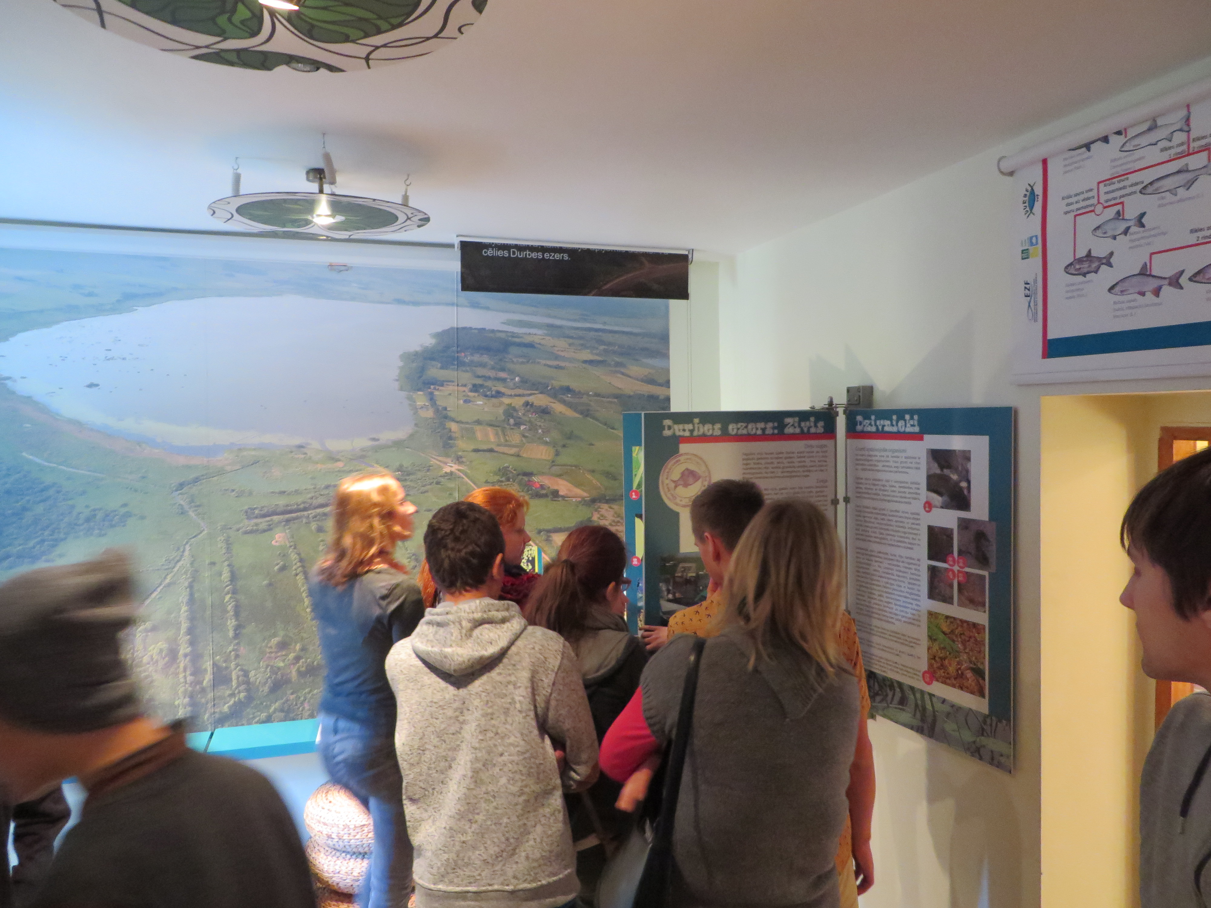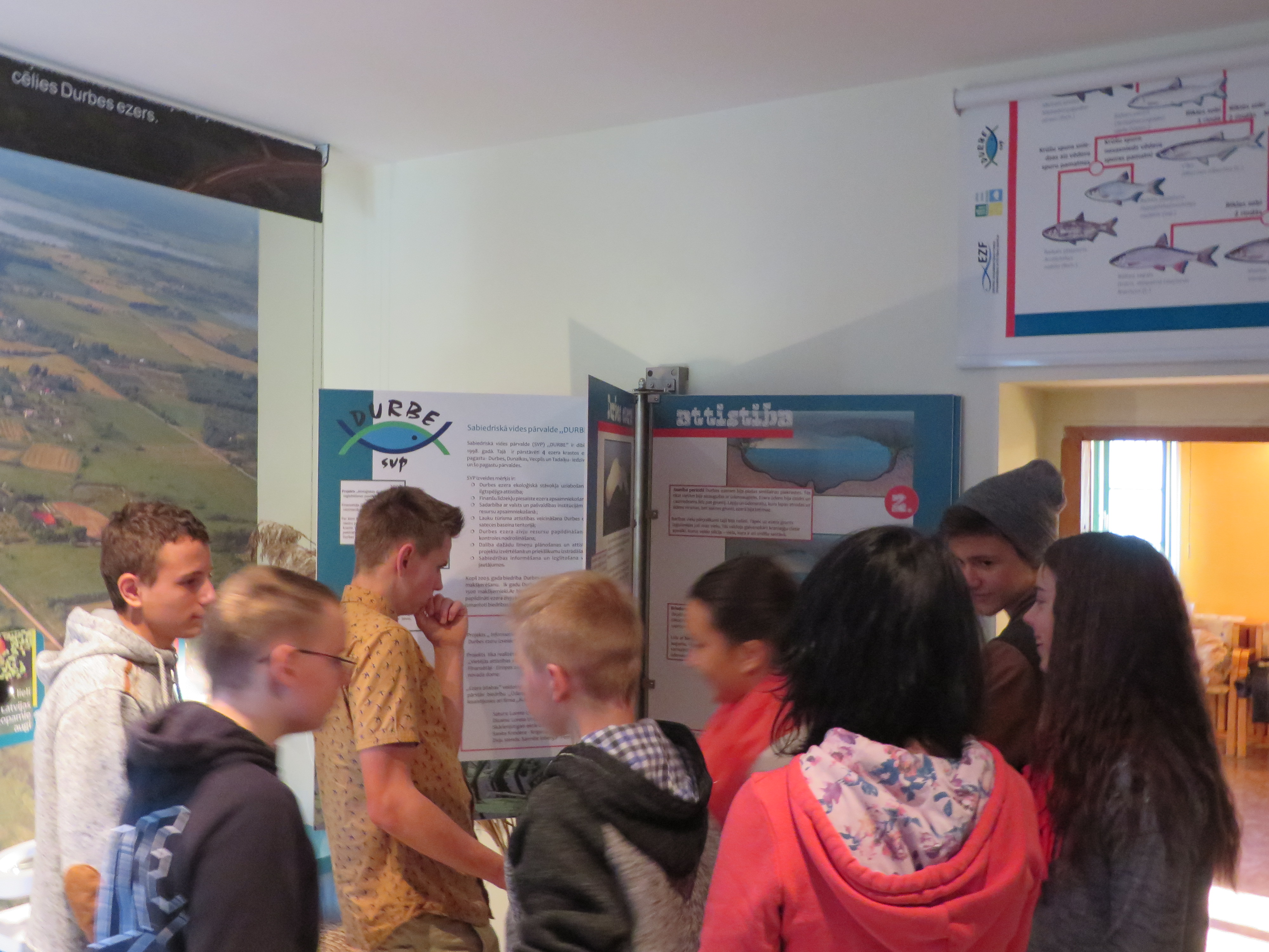 Ar ekspozīciju mūs iepazīstina tās vadītāja Liene Butkus, kura skolēnus aicināja sadalīties trijās komandās un katrai no tām iedeva īpaši sagatavotu mīklu, kas deva iespēju pašiem jauniešiem aktīvi iesaistīties atbilžu meklēšanā, vienlaikus iepazīstot ekspozīcijā apkopoto informāciju. Tādā veidā viņi uzzināja, cik zivju sugu satopamas Durbes ezerā, kā sauc mazākos Latvijas ezeros sastopamos augus, noteica attēlos redzamos augus un zivis, kā arī guva atbildes uz daudziem citiem jautājumiem.