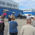 Pārbraucot uz IK “Reinis B”, ieradāmies dūmu un kūpinātu zivju smaržas valstībā, kur, gaidot saimnieci, varējām ieelpot bagātīgo gaisu un no ārpuses apskatīt zivju apstrādes cehu, iepazīties ar uzņēmuma teritoriju. Gaidīšanas svētki attaisnoja ciemiņu cerības un saimniece ieradās mūs sveikt oriģinālā tautas tērpā ar skaistām rotām. Tikām aicināti ražošanas ēkā un uzklausījām stāstu par uzņēmumu, kā sākās, ko dara, ko domā uz priekšu. Tad pārcēlāmies uz darbošanās laukumu, izņemot vienu dalībnieku, kuru nevarēja atraut no ražošanas procesa vērošanas. Viņš, vārdā Armands, tur arī palika gandrīz līdz aktivitāšu beigām, vienīgais, kas viņu atsauca realitātē, bija smaržīgā, Allas pasniegtā zivju zupa no lielā katla, kuru izmanto arī izbraukumu tirdzniecībā un pasākumos. Domāju, ka Armands rakstīs kādas piezīmes par tur redzēto vai vismaz iekļaus savos memuāros, tik koncentrējies cilvēks bija uz visu pasākumu. Bet tas jau būs cits stāsts! Allas skubināti, mēs izkustējāmies, tradicionāli verot reņģes, atceroties zivis, ko zvejo Latvijā, līdz pienāca atvadu brīdis no jaukās vietas, lai brauktu tālāk uz SIA “AKVA AGRO” zivjaudzētavu Salaspils novadā. Tiekoties apsaimniekotāju Juriju Suhecki, Salacgrīvas zivsaimnieki aizrautīgi klausījās viņa stāstītajā, skatīja baseinos peldošās milzīgās stores. Pieredzējušais zivjaudzētājs iepazīstināja ar savu uzņēmumu, ražoto produkciju, viņa stāstā tika rūpīgi raksturotas arī audzējamās zivis. Izrādās, ka cilvēki ir viltīgāki nekā stores. Mākslīgi radot baseinā ziemu un pēc tās pavasari (ar temperatūras režīma maiņu), zivjaudzētāji rosina mātītes ražot ikrus. Lai viss notiktu produktīvāk, storu mātītes tiek pakļautas ultrasonogrāfijas apskatei un tikai tad ikri tiek slaukti, apaugļoti. Tālāk ikriem nodrošina vajadzīgos dzīves apstākļus līdz izšķilšanās brīdim. Storu mātītes pēc 1,5 gada atkal ir spējīgas ražot, process tiek atjaunots. SIA "AKVA AGRO" audzē arī gaļas zivis pārdošanai, beigās tās vismaz nedēļu izturot atsevišķos baseinos bez barošanas. Ar skaistu mērķi – praktiski iepriecināt arī mājās palikušos ar citādām zivīm kā savas ķertās, braucēji līdzvešanai iegādājās tirgum sagatavotās stores. Jāatzīst, ka katra apzinīga mājsaimniece būtu priecīga pagatavot maltīti ģimenei no šādas zivs. Lai zivsaimniekiem vienmēr laba apetīte!