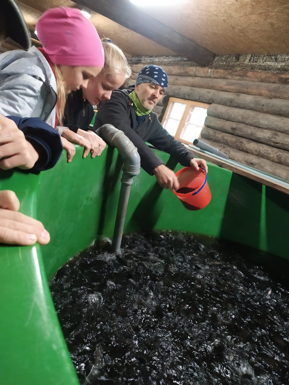Rudens ir ražas laiks ne tikai dārzkopjiem, bet arī zivsaimniekiem, jo tiek veikta zivju nozveja, tomēr, neraugoties uz aizņemtību, mūs pie sevis laipni uzņēma SIA “Faps” saimnieks Armands Roze, kurš jau vairāk nekā 20 gadus nodarbojas ar zivju mazuļu audzēšanu citu zivsaimniecību nodrošināšanai ar mazuļiem, kas ir specifisks process. Patlaban saimniecībā guļbūves ēkā speciālos baseinos tiek audzēti lašveidīgo zivju – foreļu un paliju – mazuļi. Bērni ar interesi vēroja foreļu barošanas procesu, jo zivju mazuļi, jau ūdens atspulgā ieraugot sarkano barības spainīti, kļuva aktīvāki un pēc pirmās barības saujas saņemšanas varēja vērot īstu “zivju šovu”. Saimnieks pastāstīja, ka arī zivīm ļoti būtiska ir higiēna, tādēļ katrai zivju sugai tiek izmantoti atsevišķi instrumenti, lai izvairītos no infekciju pārnešanas. Bērni redzēja arī Virguļicas upītes slūžas, ar kurām tiek regulēts ūdens līmenis. Tālāk sarunas un jautājumi par zivsaimniecību un nozares ekonomiskajiem aspektiem turpinājās pie ugunskura. Skolēni aktīvi iesaistījās foreļu zupas gatavošanā, saimnieks parādīja knifiņus, lai zivju zupā būtu pēc iespējas mazāk asaku. Kamēr zupa gatavojās, notika skolēnu līdzpaņemto paštaisīto pludiņu izstāde, kurā Armands Roze bērniem sniedza ieteikumus, kā tos varētu uzlabot, un parādīja, ka arī pavisam parastu zariņu var pārvērst par pludiņu! Baudot zīļu kafiju, garšīgo foreļu zupu un klausoties pieredzes bagātā saimnieka stāstījumā, skolēniem bija iespēja papildināt zināšanas zivsaimniecības nozarē. Brauciens bija izdevies, par to liecināja priecīgais noskaņojums un dziesmas, kas skanēja autobusā mājupceļā, un, kas zina, varbūt nākotnē kāds no šiem skolēniem savu ikdienu izvēlēsies saistīt tieši ar zivsaimniecību. Lai izdodas!