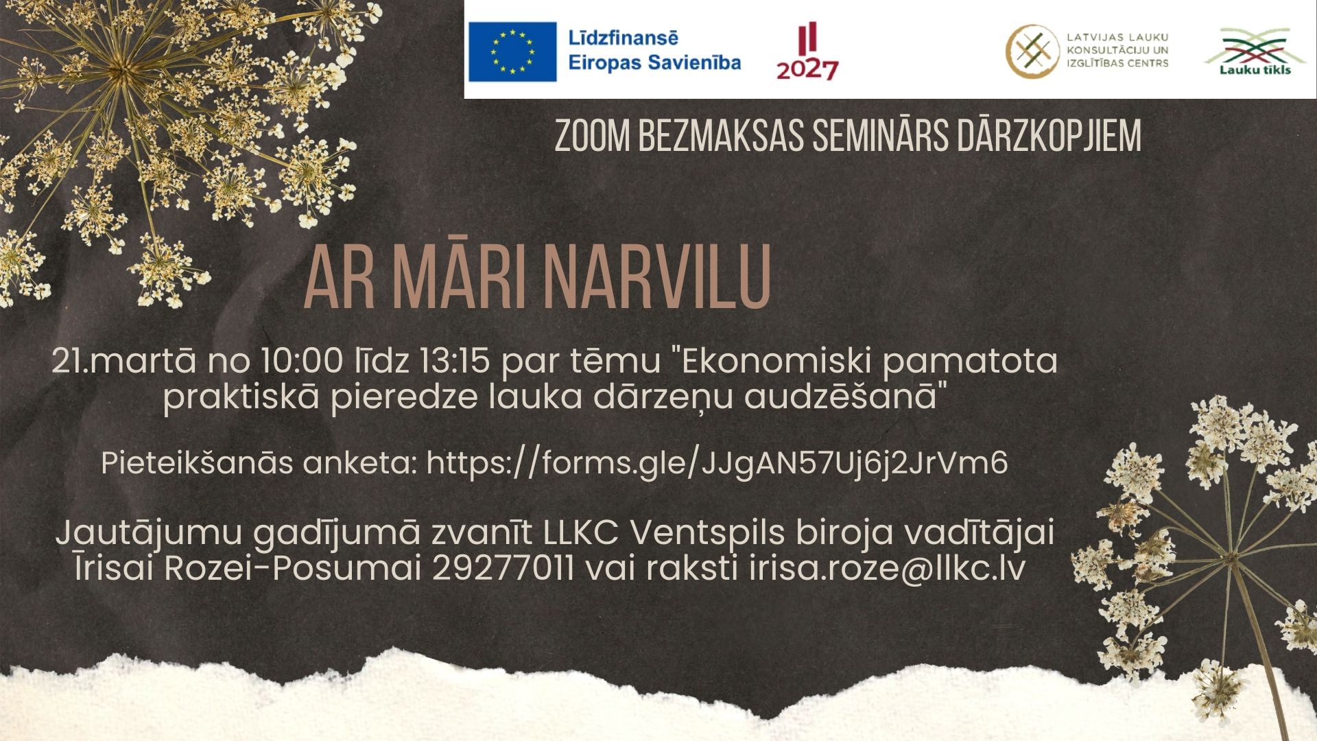 Saite uz semināru tiks nosūtīta e-pastā 20.martā laikā līdz 21:00