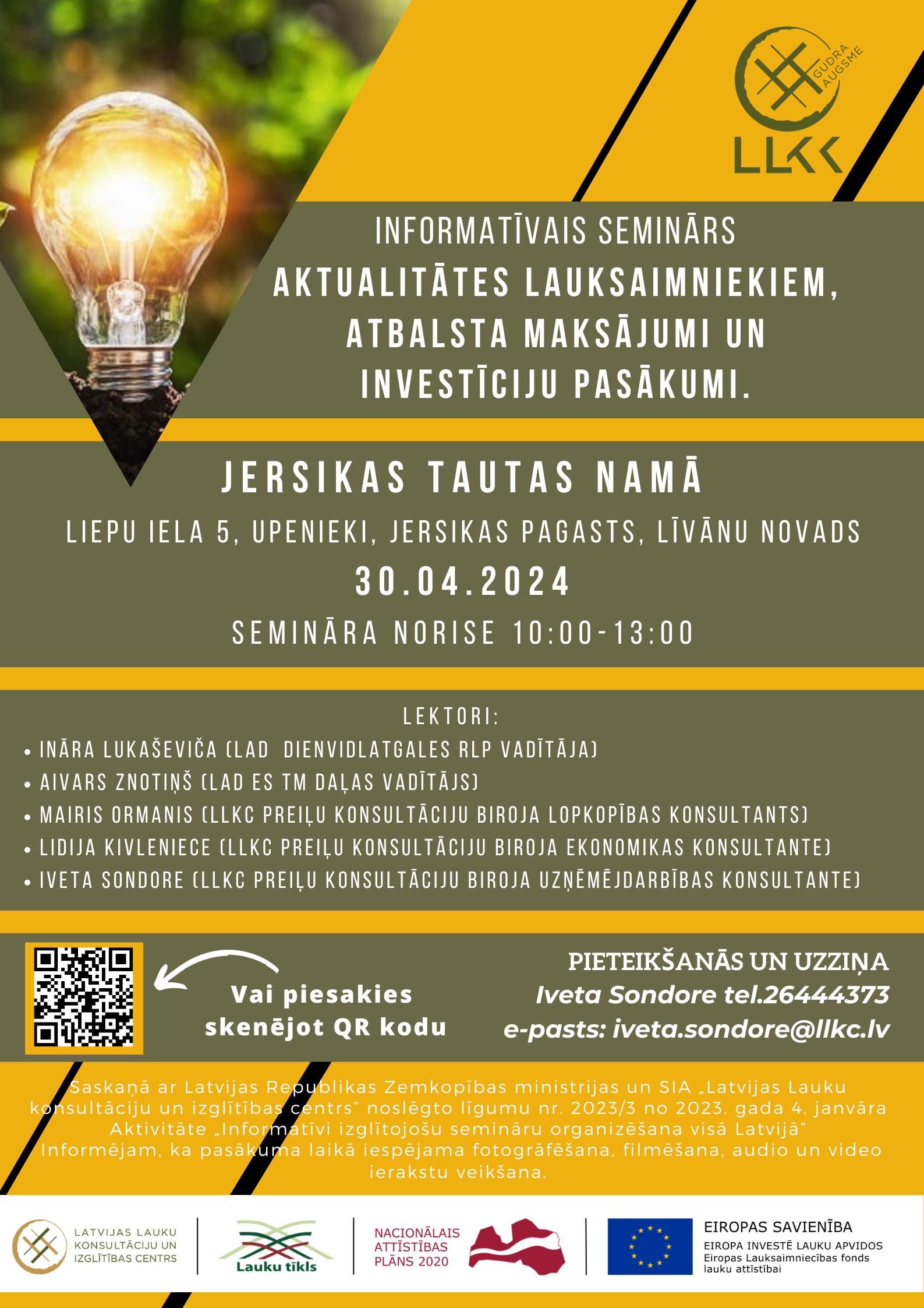 Informatīvais seminārs: "Aktualitātes lauksaimniekiem, atbalsta maksājumi un investīciju pasākumi."
