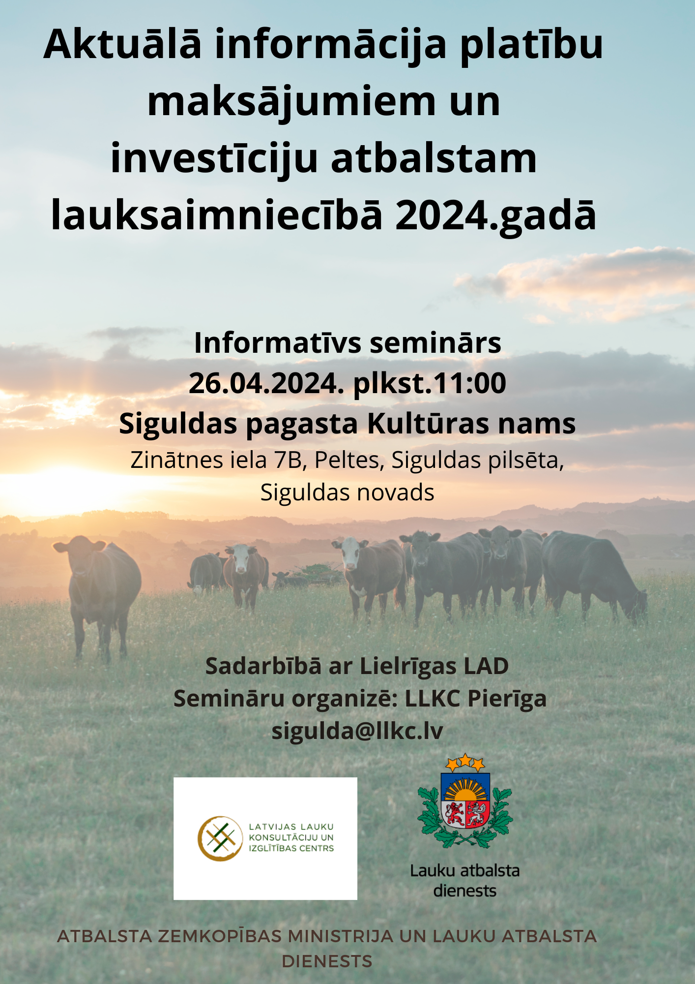 Semināra organizatori: LLKC Pierīgas birojs. Kontaktu informācija: 26307940/ sigulda@llkc.lv