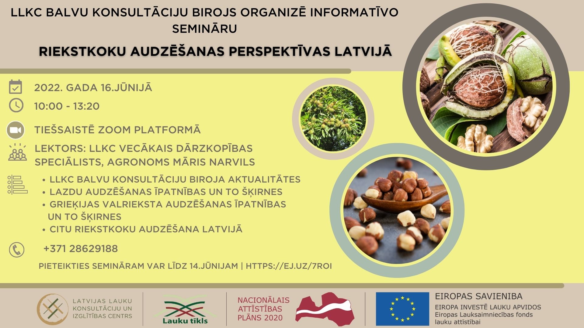 SIA "Latvijas Lauku konsultāciju un izglītības centrs" Balvu birojs organizē bezmaksas tiešsaistes informatīvo semināru "Riekstkoku audzēšanas perspektīvas Latvijā ".