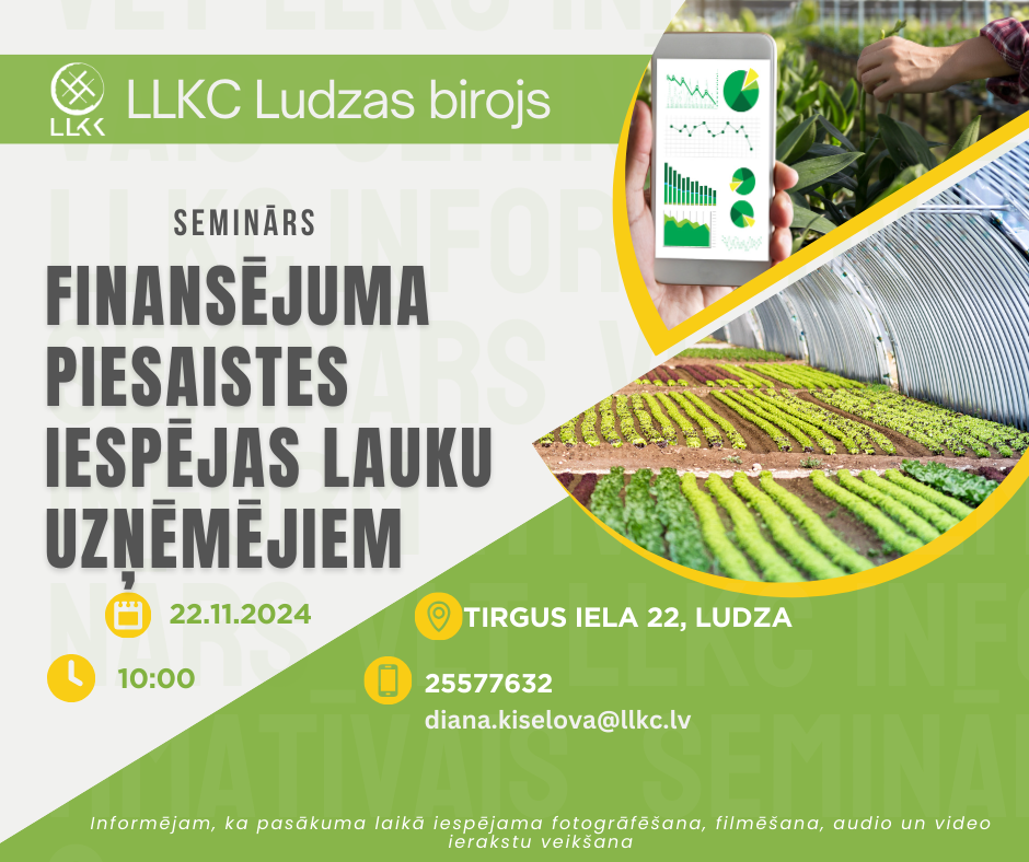 SIA “Latvijas Lauku konsultāciju un izglītības centrs” Ludzas birojs šī gada 22.novembrī rīko semināru “Finansējuma piesaistes iespējas lauku uzņēmējiem”.