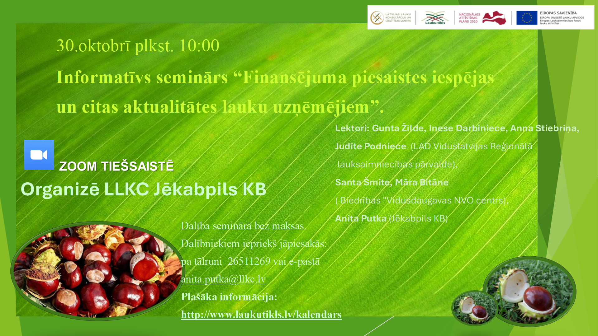 Informatīvu semināru “Finansējuma piesaistes iespējas un citas aktualitātes lauku