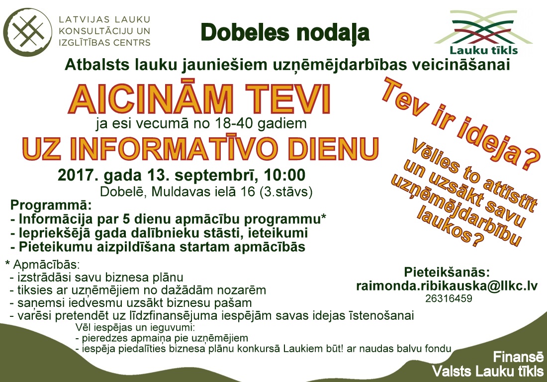 Aicināti jaunieši vecumā no 18-40 gadiem, kuri vēlas uzsākt vai attīstīt savu uzņēmējdarbību.