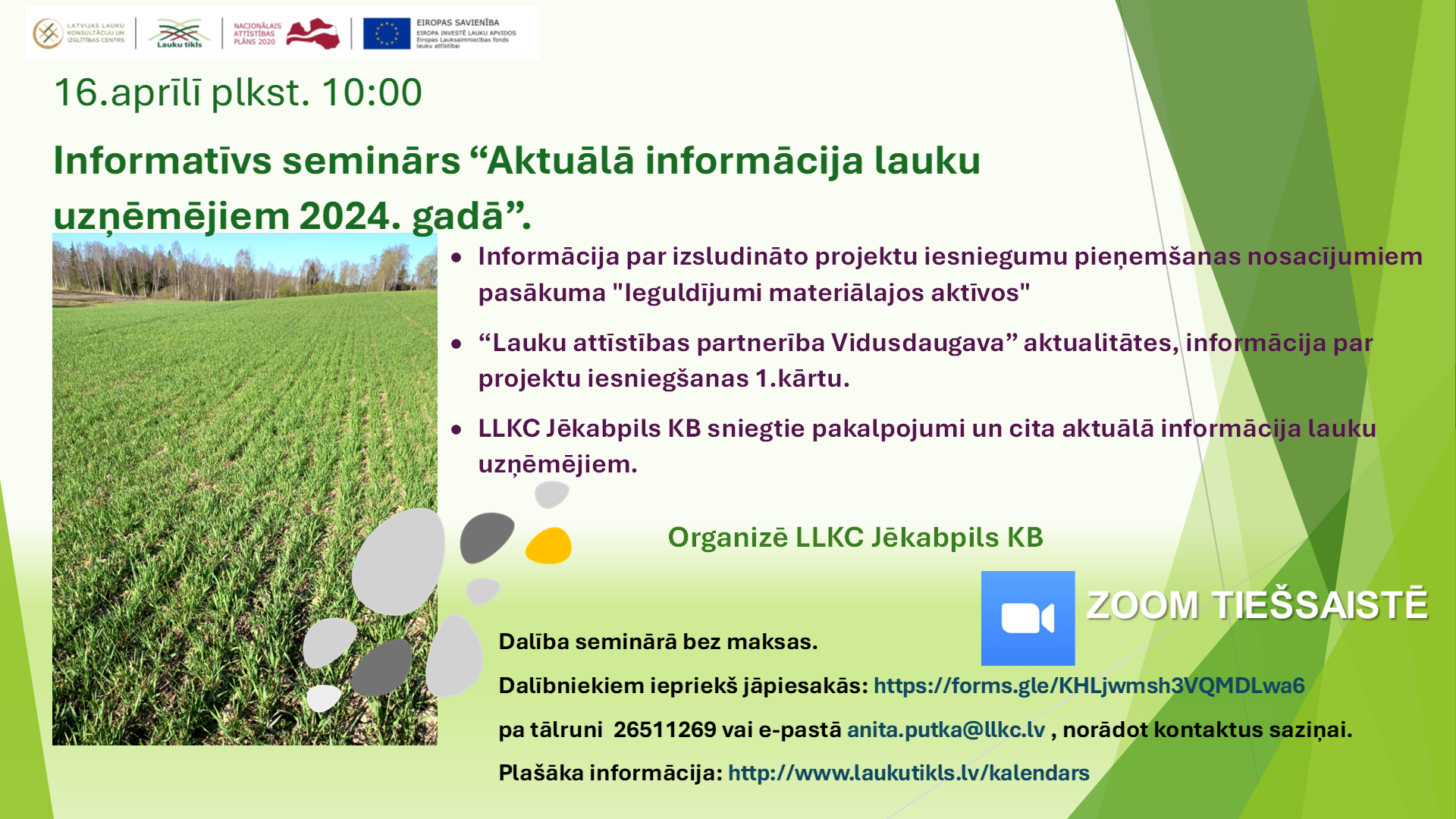 • LLKC Jēkabpils KB sniegtie pakalpojumi un cita aktuālā informācija lauku uzņēmējiem.