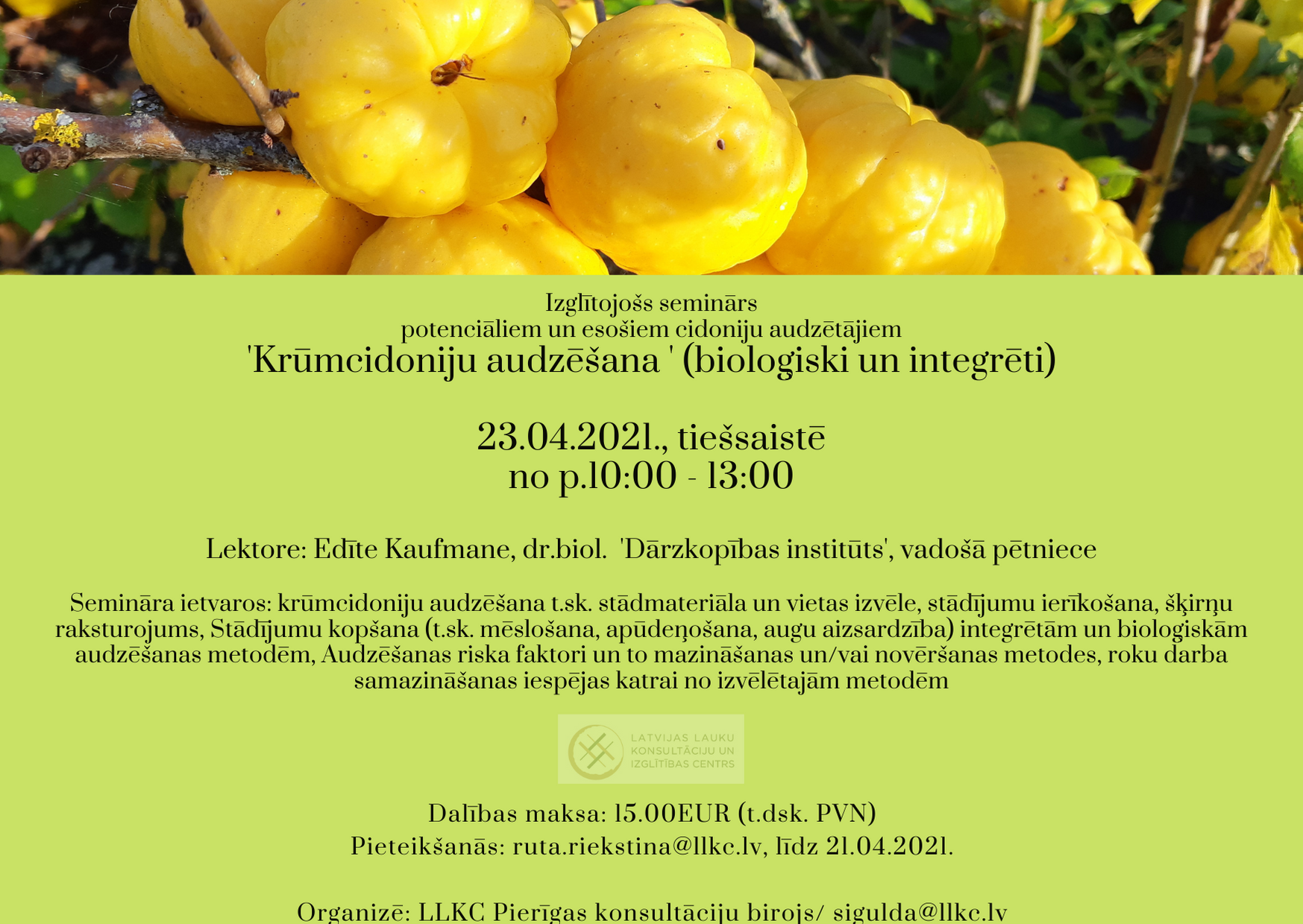 Par aktuālām metodēm krūmcidoniju audzēšanā kā bioloģiski tā integrēti zināšanās dalīsies APP 'Dārzkopības institūts' vadošā pētniece Elita Kaufmane. Specializējusies Krūmcidoniju selekcijā un agrotehnikas risinājumos.