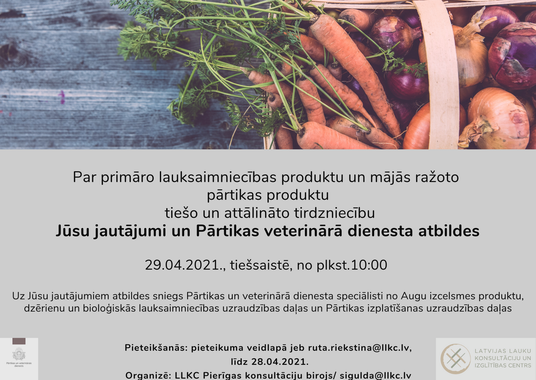 Arvien pieaugot jautājumiem no pārtikai mājās ražotās produkcijas un primārās lauksaimniecības produkcijas ražotājiem/ tirgotājiem, Pārtikas un veterinārais dienests (PVD), ir ierosinājis jautājumu/atbilžu sesiju tiešsaistē jau 29.04.2021.., plkst.10:00.