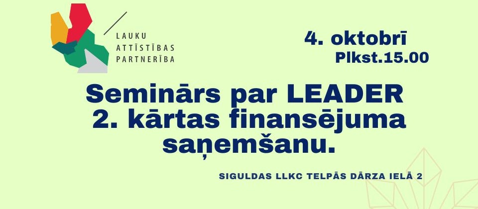 Lai informētu interesentus par atbalsta piesaistes iespējām jauniešu iniciatīvām Siguldas novadā, interesenti ir aicināti uz klātienes semināru 04.10.2024., plkst.15:00, Dārza ielā 2a, Sigulda, SIA LLKC Pierīgas birojs semināra telpā.