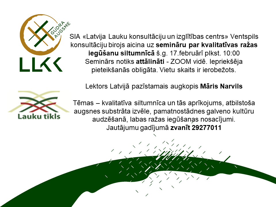 Seminārs tiek organizēts saskaņā ar Latvijas Republikas Zemkopības ministrijas un SIA „Latvijas Lauku konsultāciju un izglītības centrs” noslēgto līgumu nr. 2021/6 19.01.2021. Aktivitāte „Informatīvie semināri”.