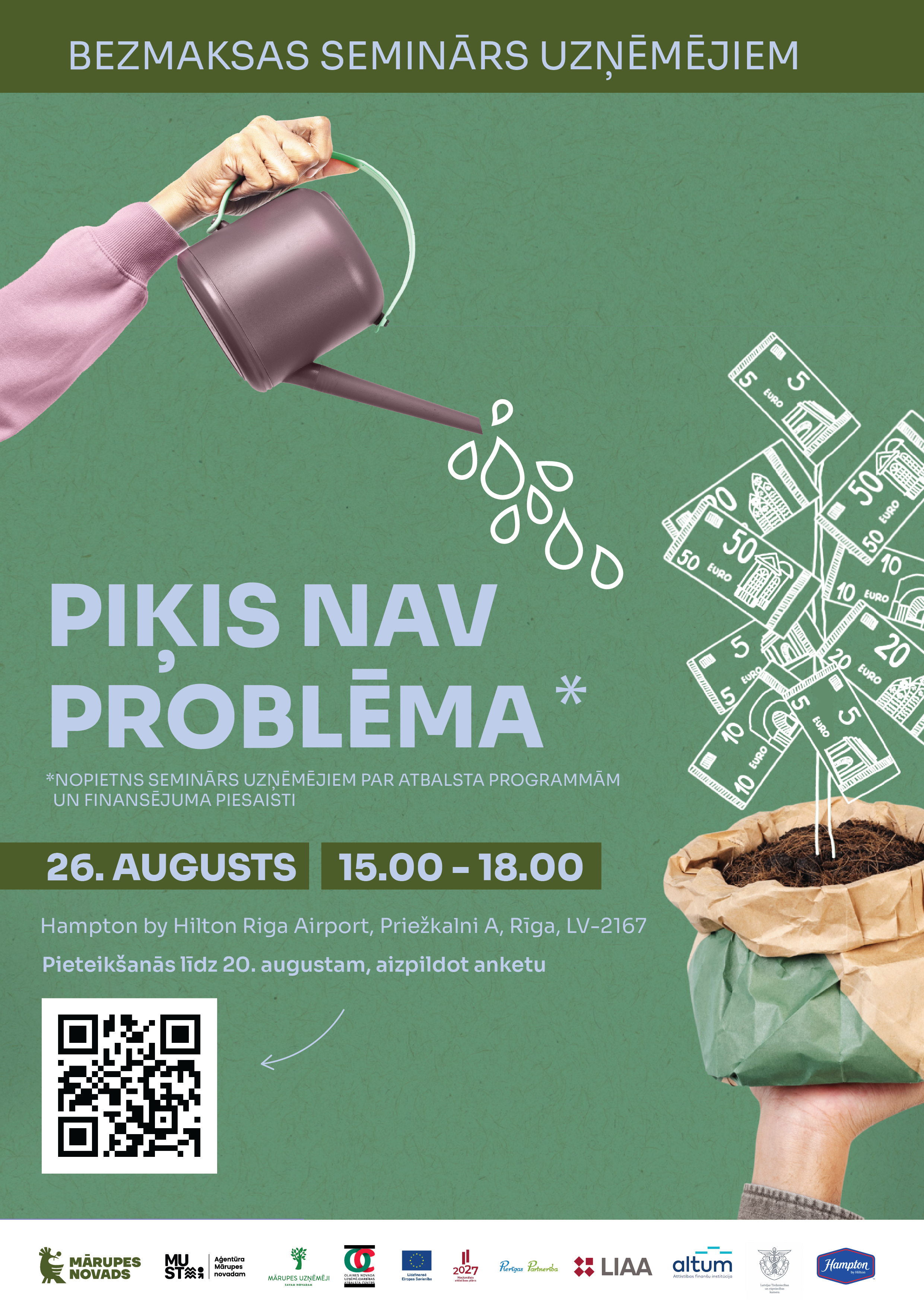 Ērtākai semināra sasniedzamībai, tā norisei izvēlēta Rīga. 26.08.2025., 15:00 - 18:00, Viesnīca 'Hampton by Hilton', lidosta Rīga teritorija, Priežkalni A, Rīga, LV-2167.