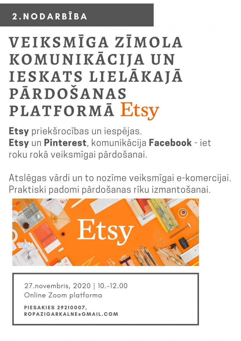 Seminārs 'Veiksmīga zīmola komunikācija un ieskats lielākajā pārdošanas platformā ETSY'