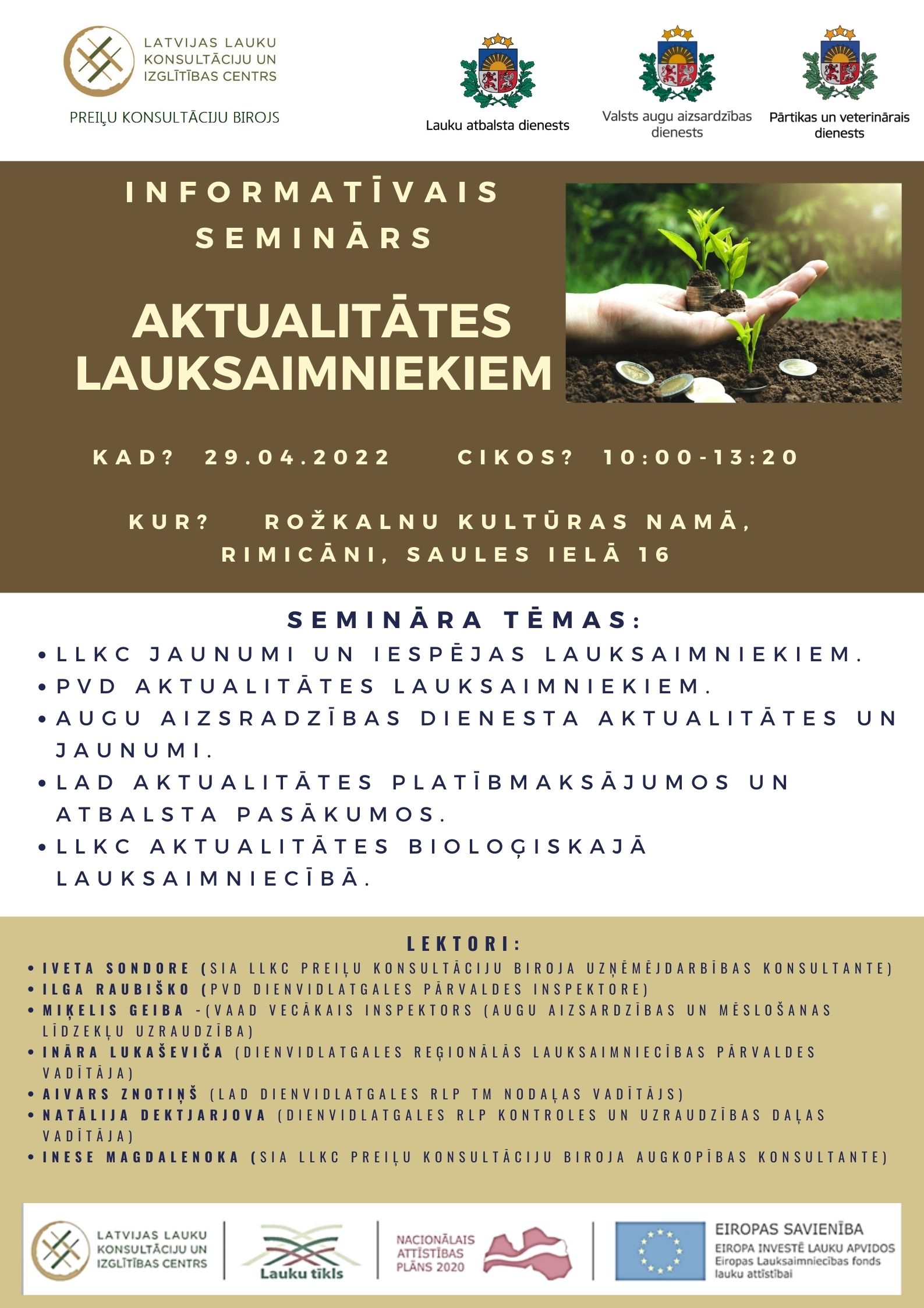 Saskaņā ar Latvijas Republikas Zemkopības ministrjas un SIA "Latvijas Lauku konsultāciju un izglītības centrs" noslēgto līgumu nr. 2021/125 28.12.2021 Aktivitāte "Informatīvi izgītojošu semināru organizēšana visā Lavijā"
