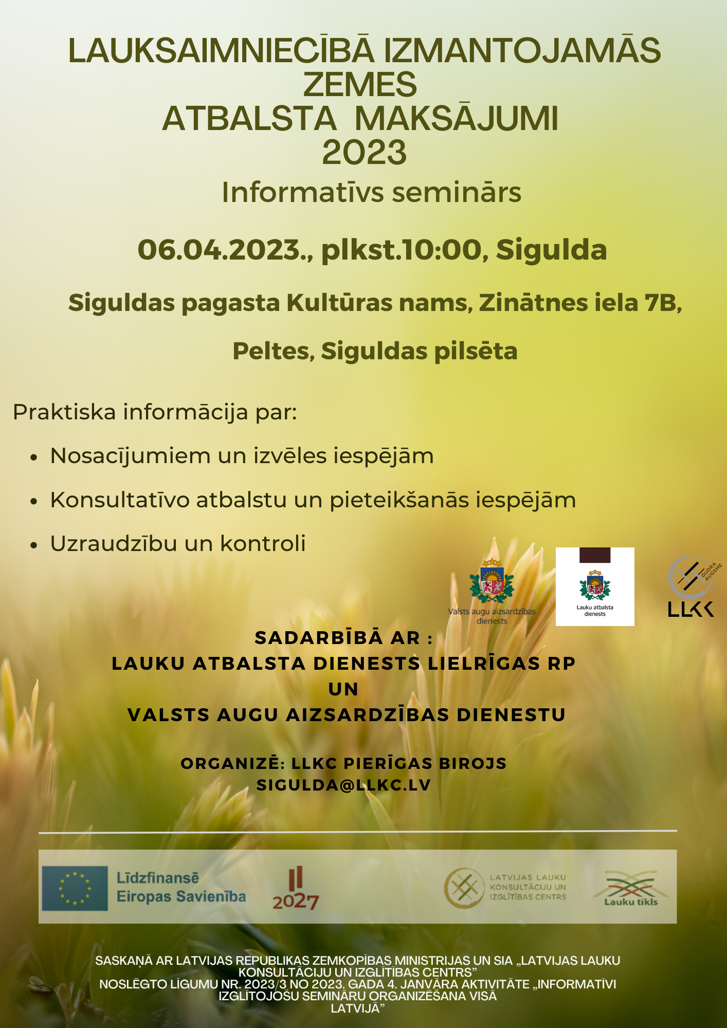 Semināra norise klātienē: 06.04.2023., p.10:00. Siguldas pagasta Kultūras namā, Zinātnes iela 7B, Peltes, Siguldas pilsēta.