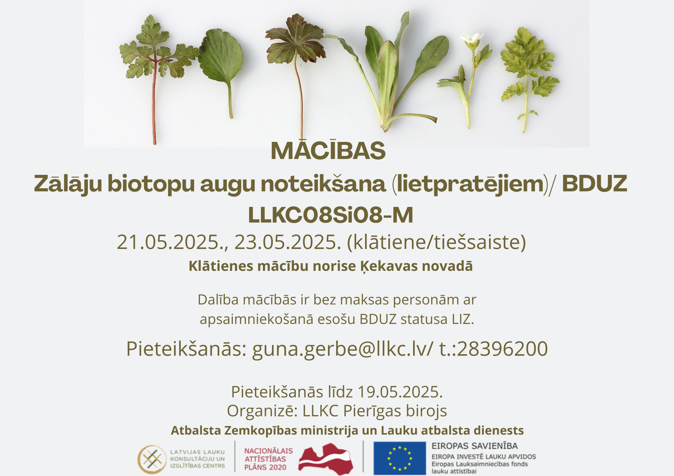 Pieteikšanās līdz 19.05.2025. guna.gerbe@llkc.lv/ t. 28396200